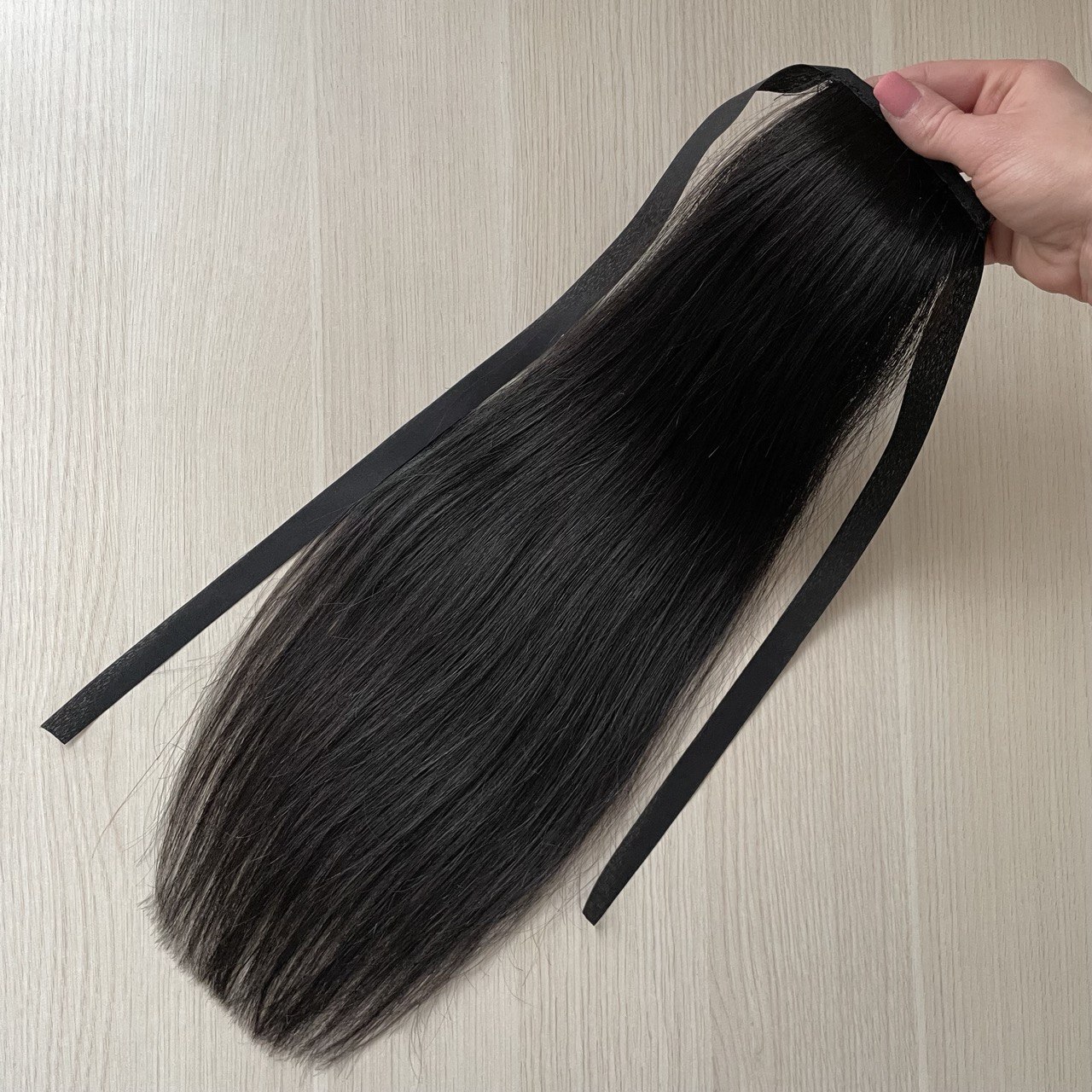 Хвост на ленте имеет простое крепление. Закрепляется быстро и легко, хорошо держится. Пряди полностью натуральные без примесей, имеют красивый естественный черный оттенок. Благодаря высокому качеству волос, хвосты долго носятся и хорошо выглядят при правильном уходе за ними. Волосы можно мыть, завивать, выпрямлять и делать все то же самое, что со своими волосами. Бигуди, плойки, утюжки также ожно использовать для укладки. Подойдет для вечерних причесок и ежедневной носки.
