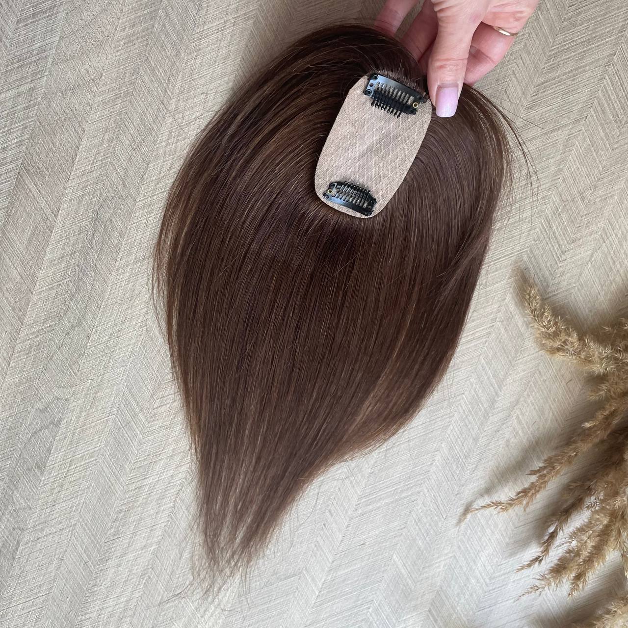Мини накладка из натуральных волос на теменную зону - #6 русый-шатен
