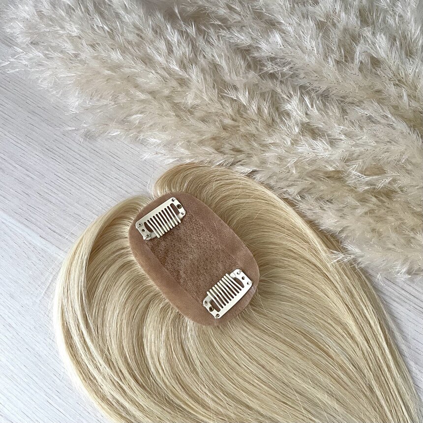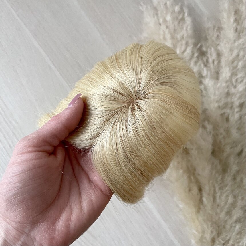 Накладка из натуральных волос на макушку длиной 18 см в оттенке классический блонд #613. Эта теменная накладка идеально подойдет для создания стильного образа, наполненного естественностью и элегантностью.