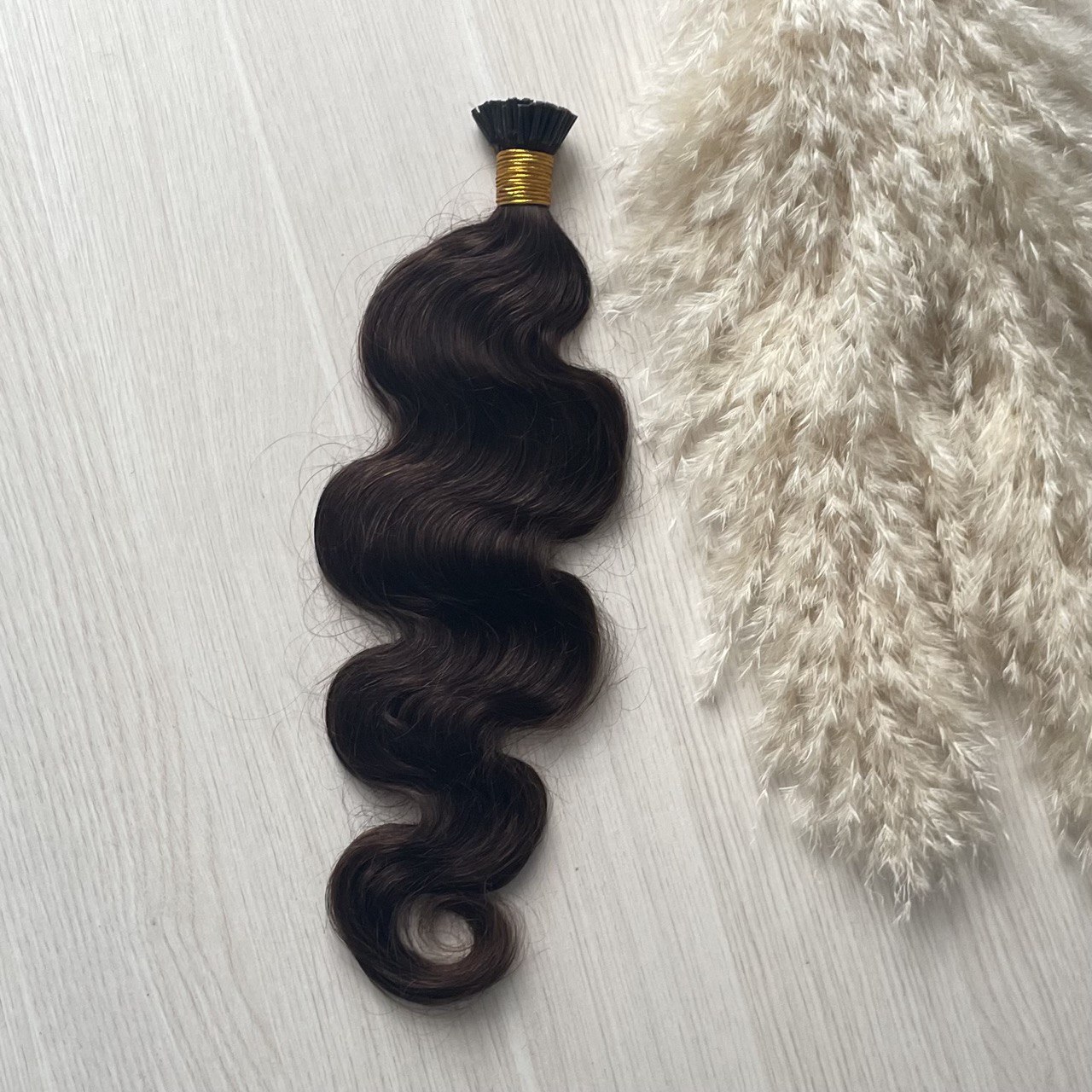 Натуральные кудрявые волосы на капсулах 50см 100г 100 прядей - коричневый #4