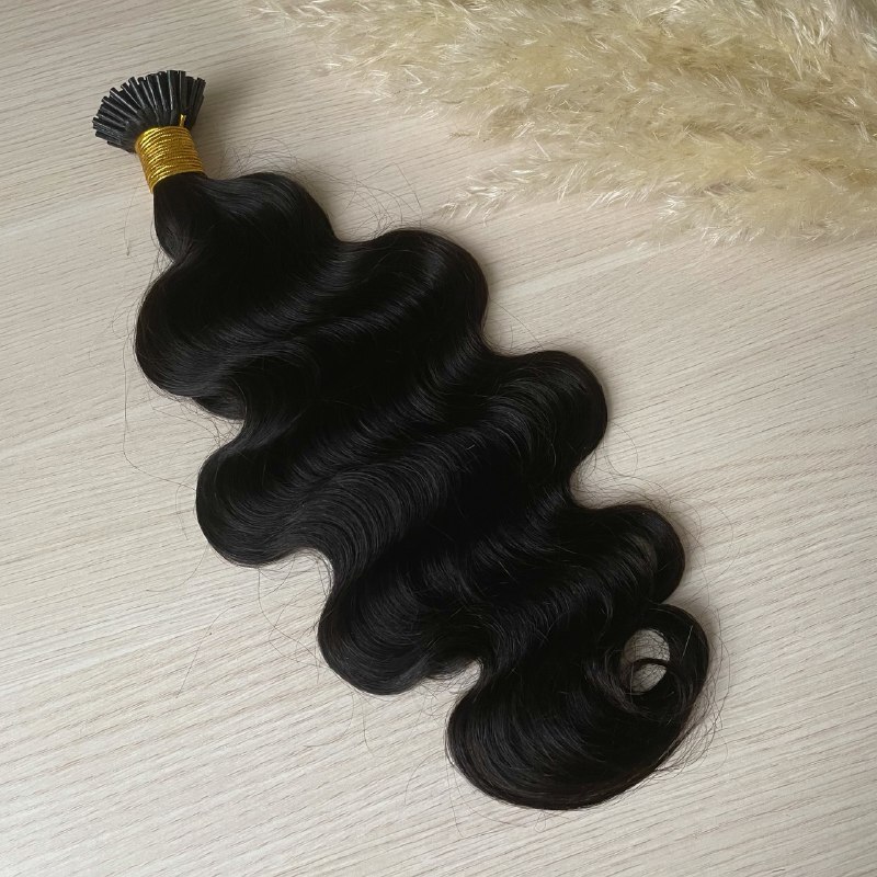 Натуральные кудрявые волосы на капсулах 50см 100г 100прядей - натуральный черный #1b