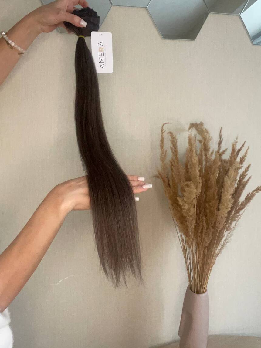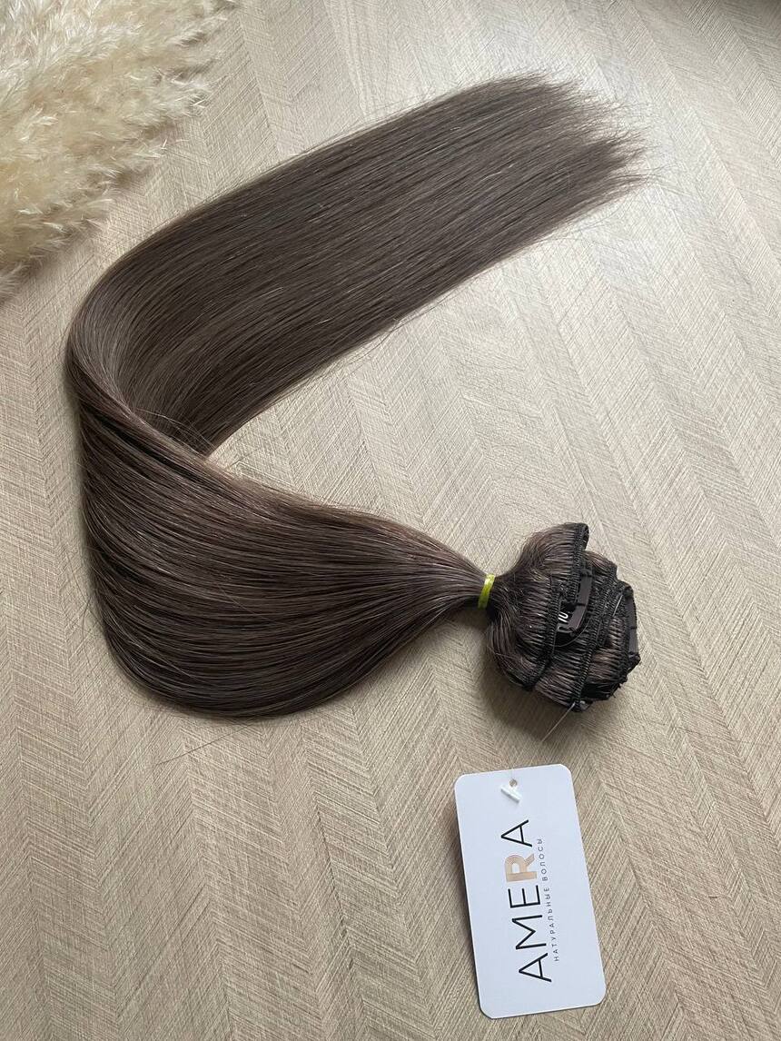Натуральные русые волосы на заколках #6 60см