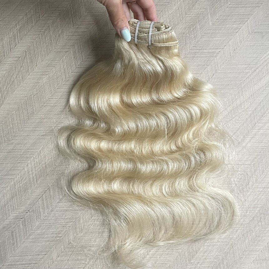 Натуральные волнистые Premium волосы на заколках 50см 120г - #613 блонд