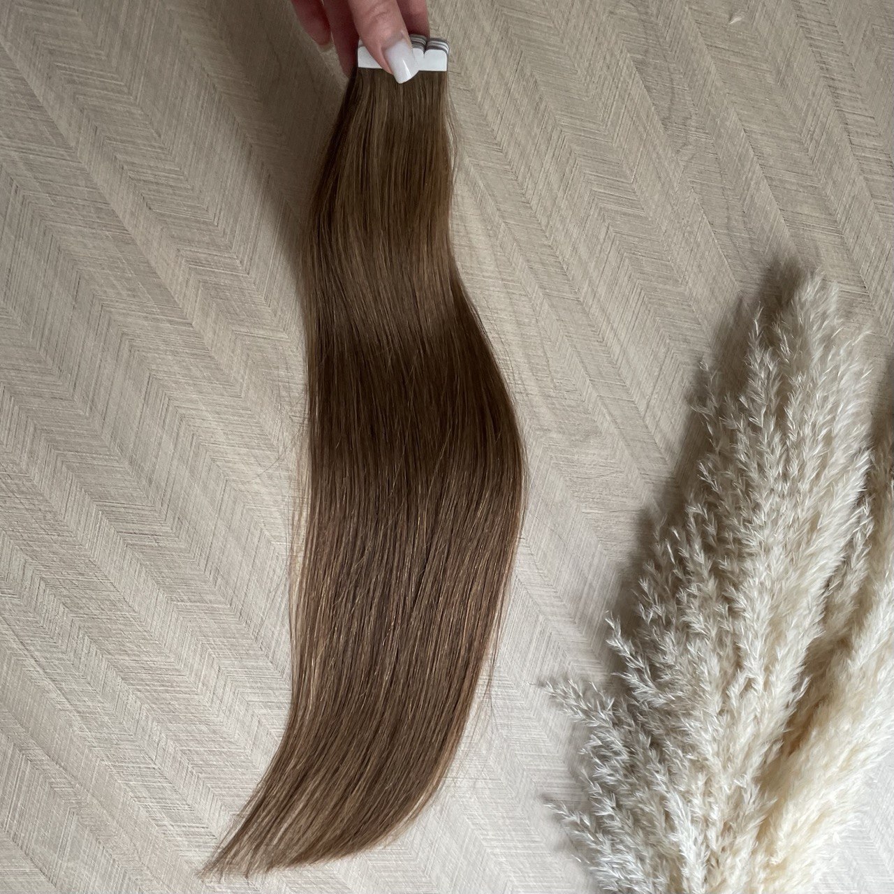 Натуральные волосы на лентах 50см 20 лент 40г #8 русый