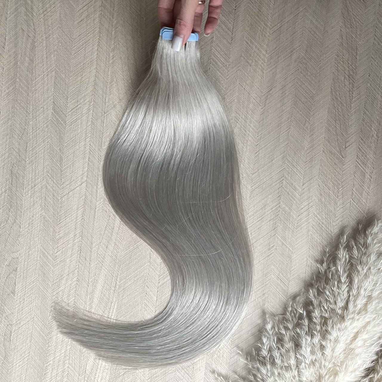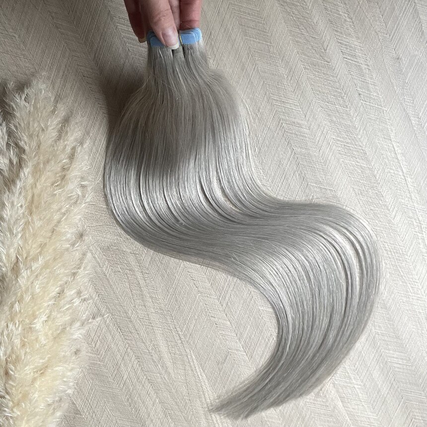 Натуральные волосы на лентах 60 см 20 прядей 50г - серебристый блонд #60с