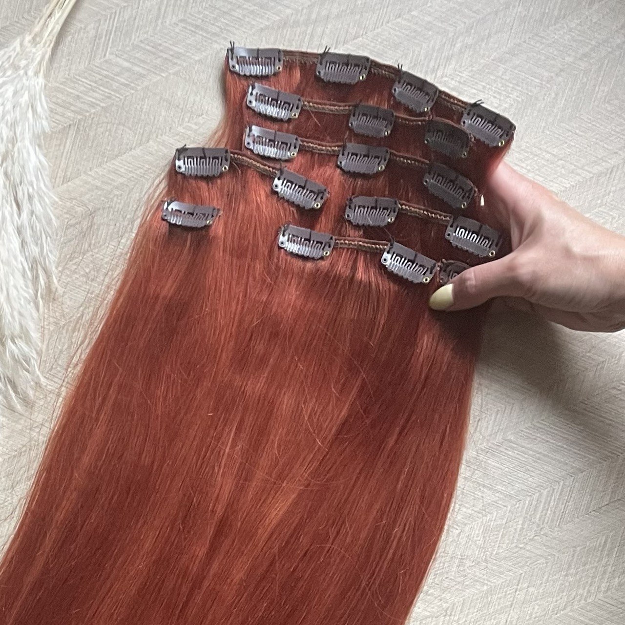 Натуральные волосы на заколках 65 см 120 г - рыжий #130