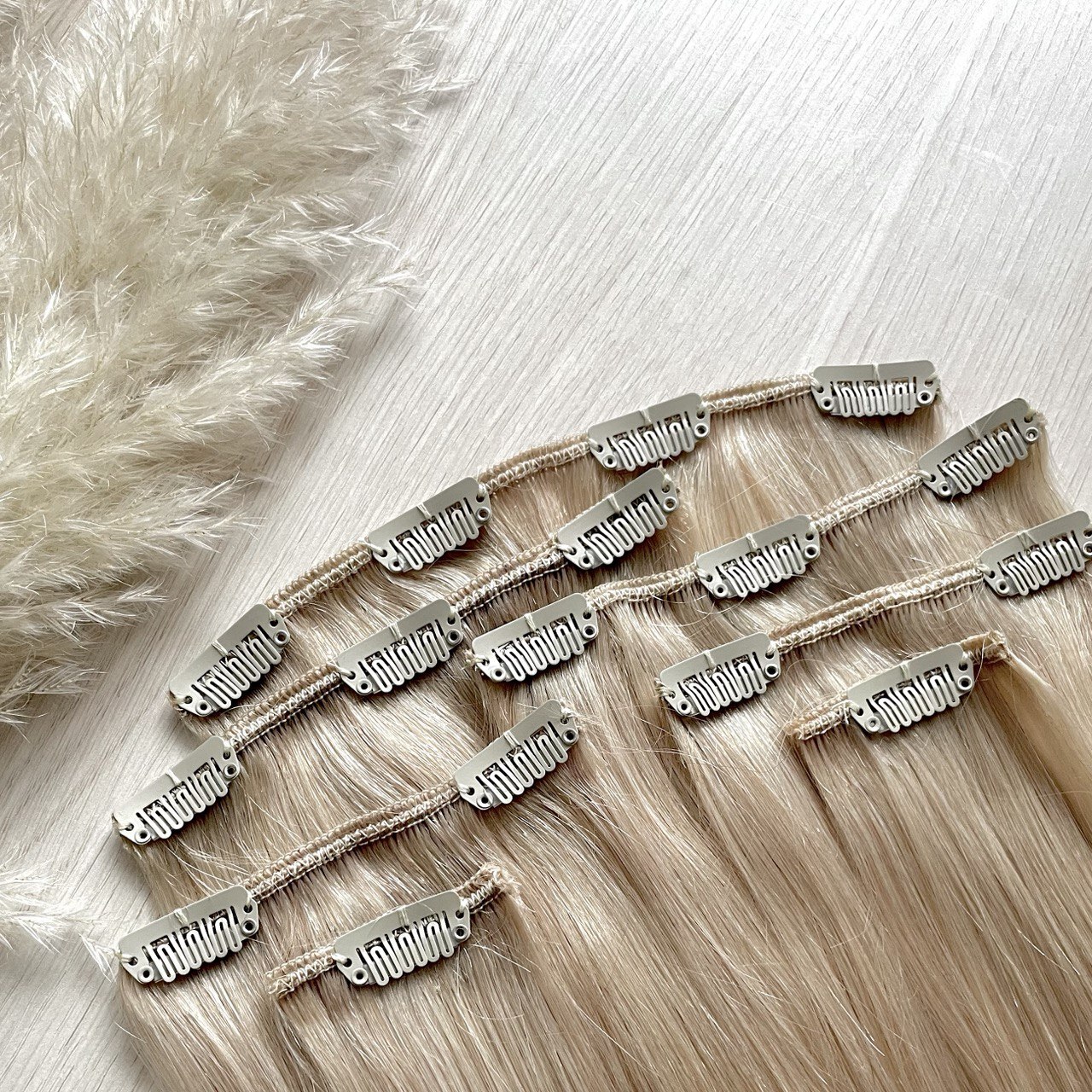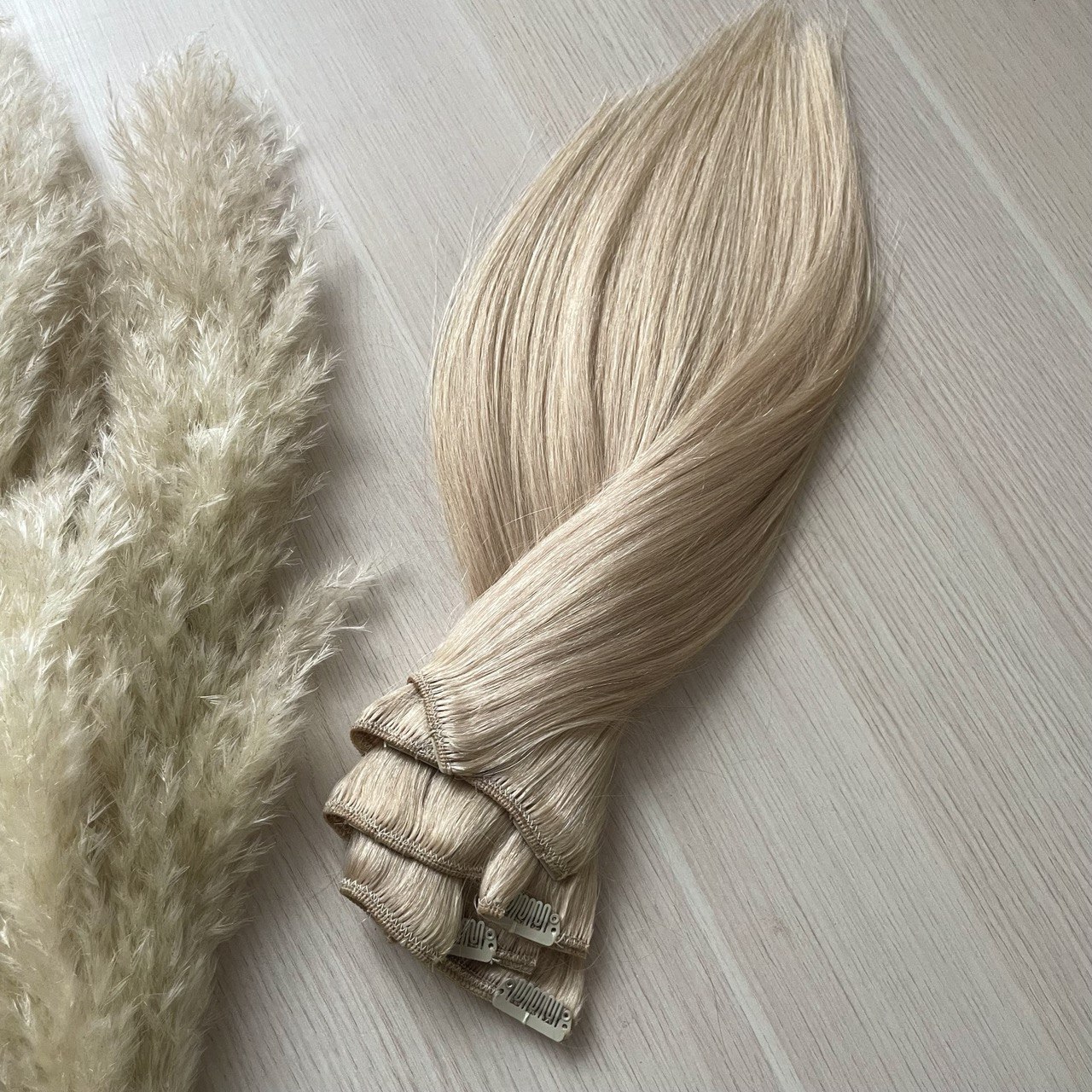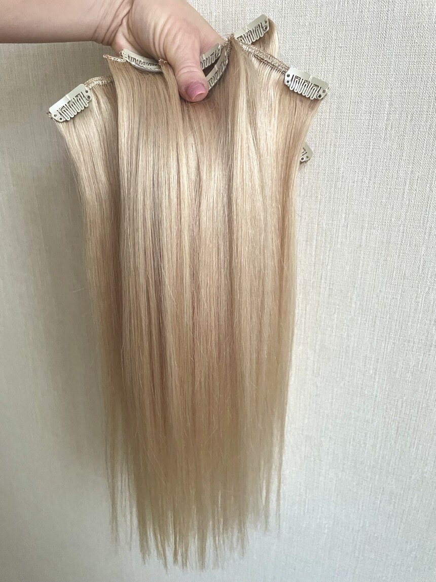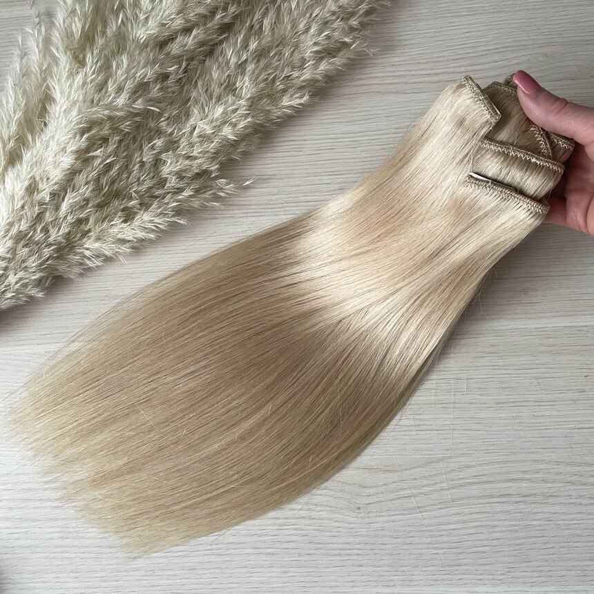 Натуральные волосы на заколках для наращивания 40см 110г - платиновый блонд #60