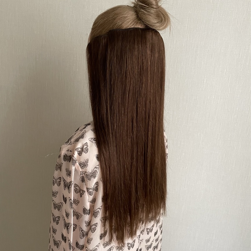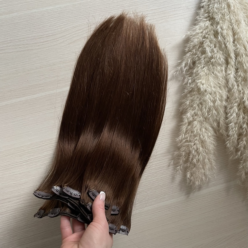 Натуральные волосы на заколках для наращивания 40см 110г - коричневый #4