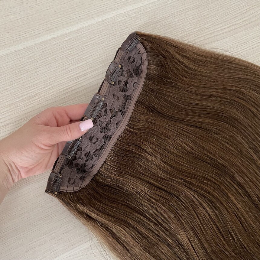 Натуральные волосы на заколках однопрядью 50см 100г - темно-русый #6