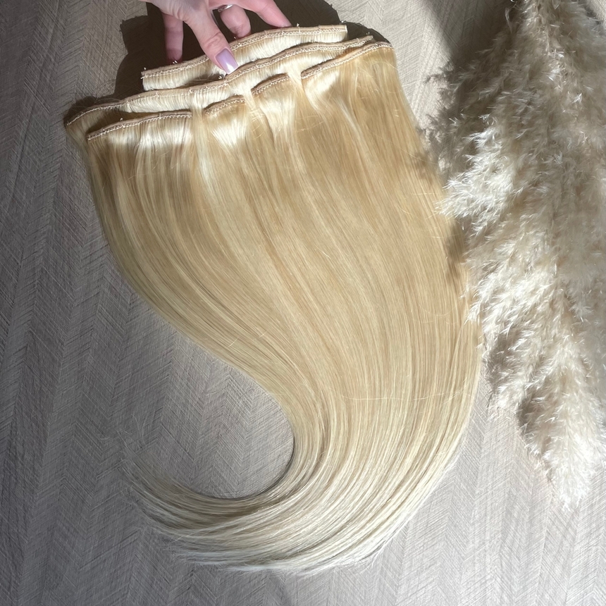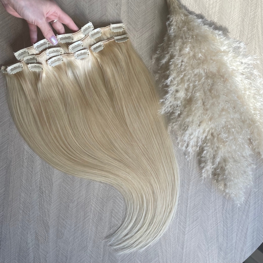 Натуральные волосы на заколках пепельный блонд 50см 120г