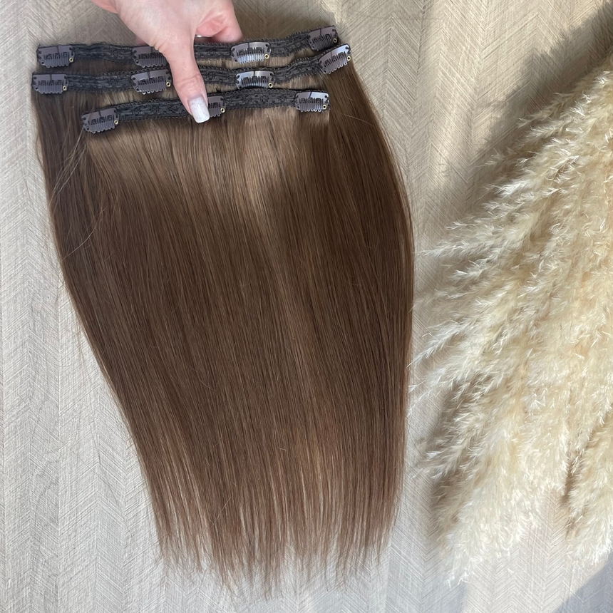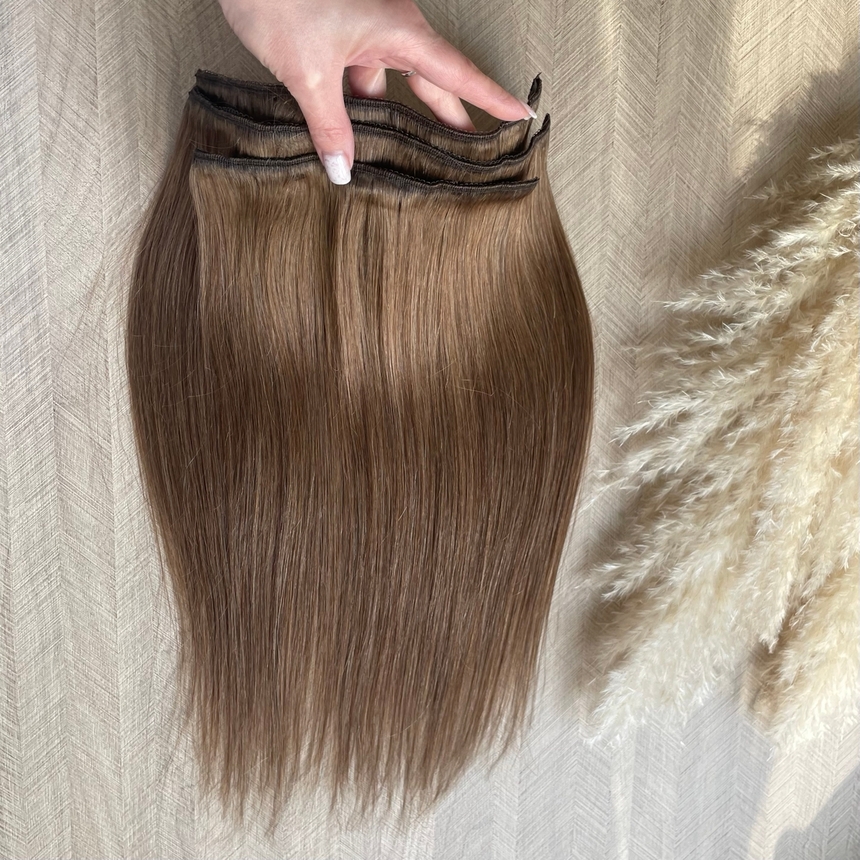 Премиум натуральные накладные пряди на заколках 40см 60г - пепельно-русый #10