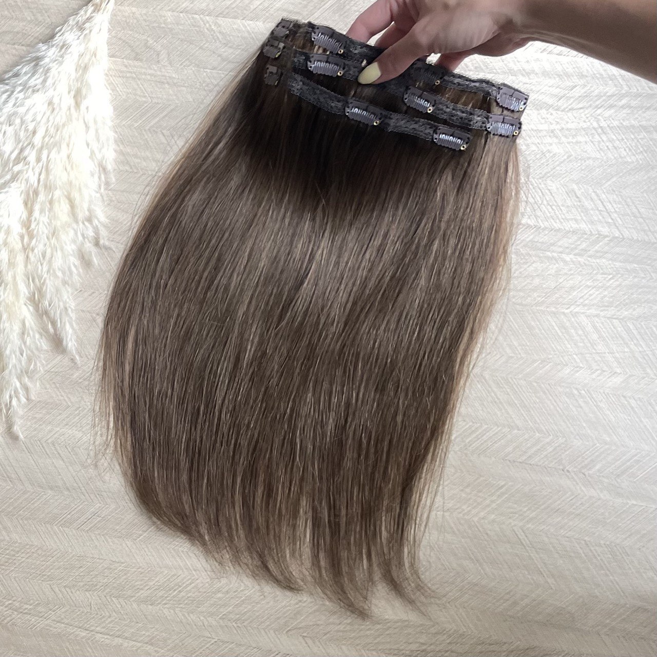 PREMIUM Натуральные накладные пряди на заколках 40см 60г - русый #9