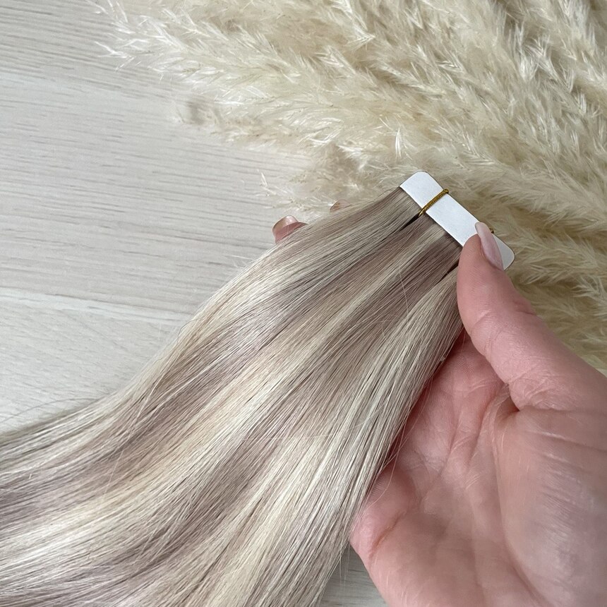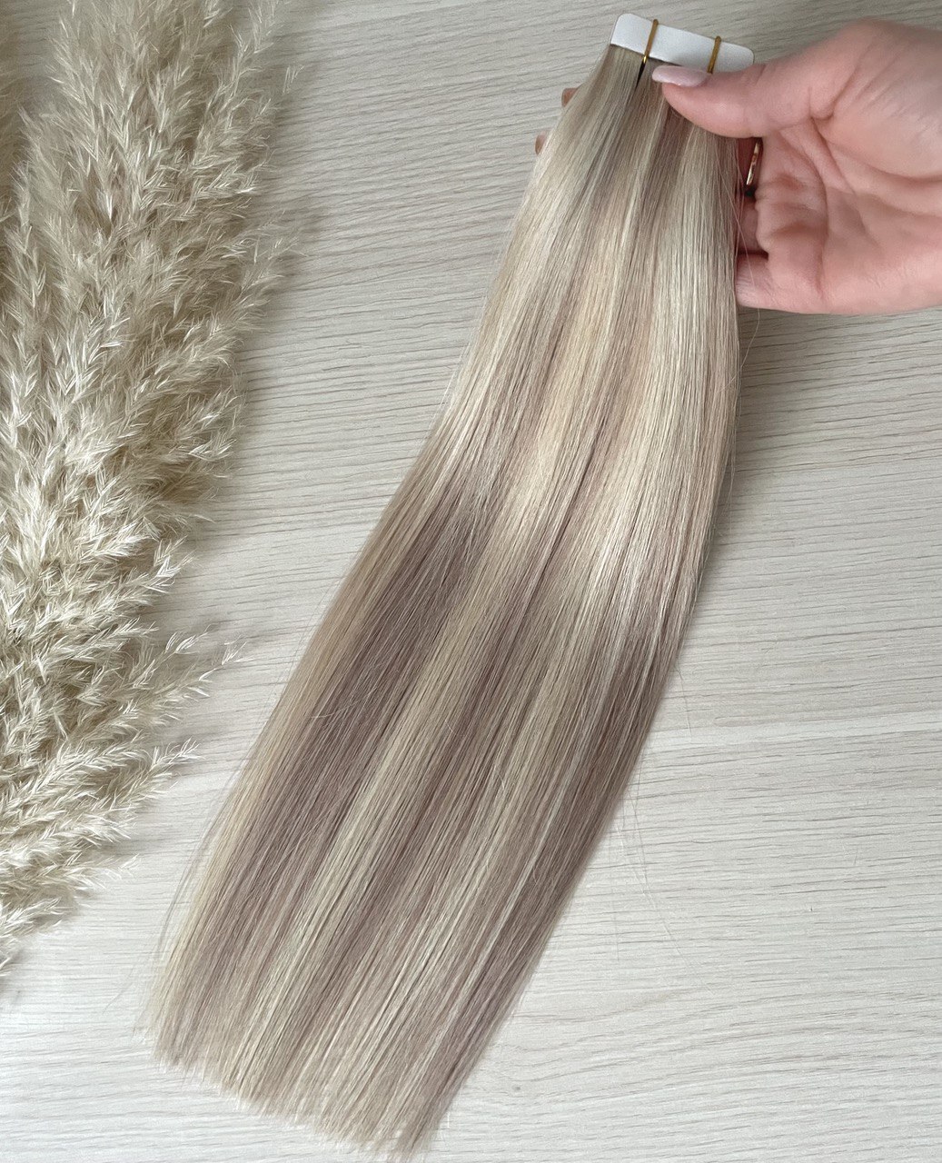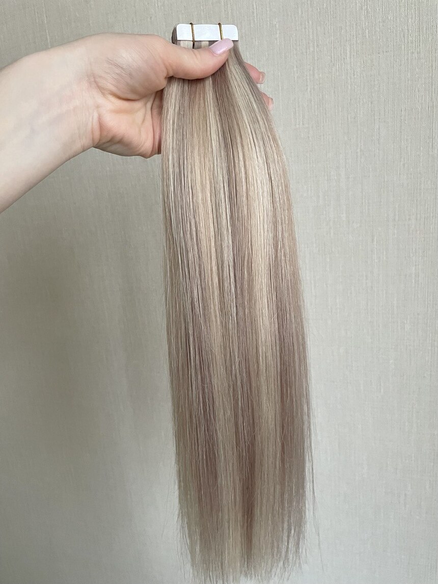 Набор натуральных волос на лентах для холодного клеевого наращивания - 20 прядей.