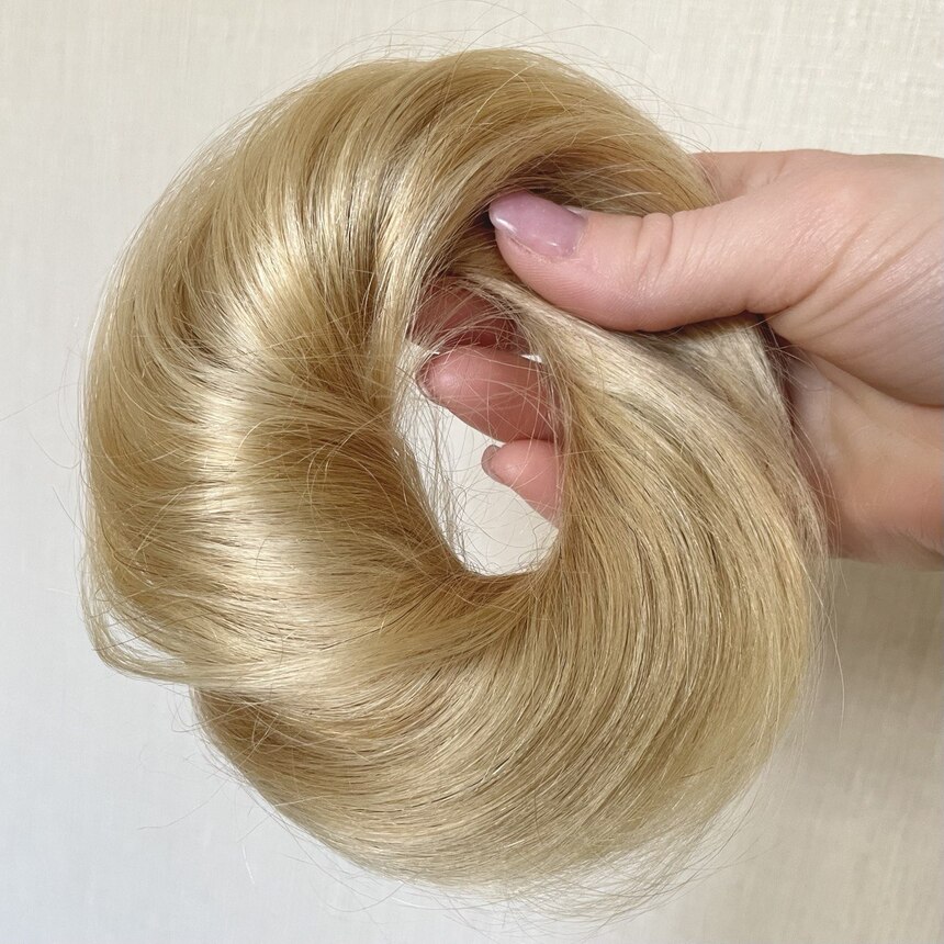 Резинка изготовлена из натуральных волос. Пучок повышенной густоты. Шиньон можно сушить феном, тонировать, мыть, выпрямлять, накручивать. С помощью резинки-шиньона Вы легко и быстро создадите красивую прическу. Оберните резинку вокруг хвоста или пучка - и прическа готова.