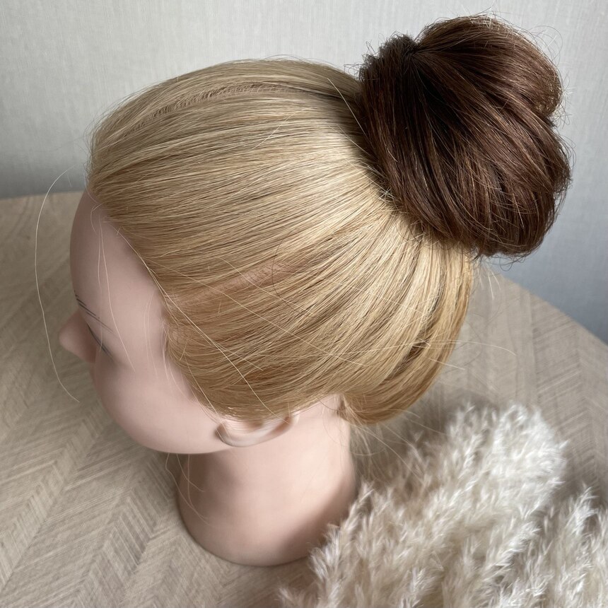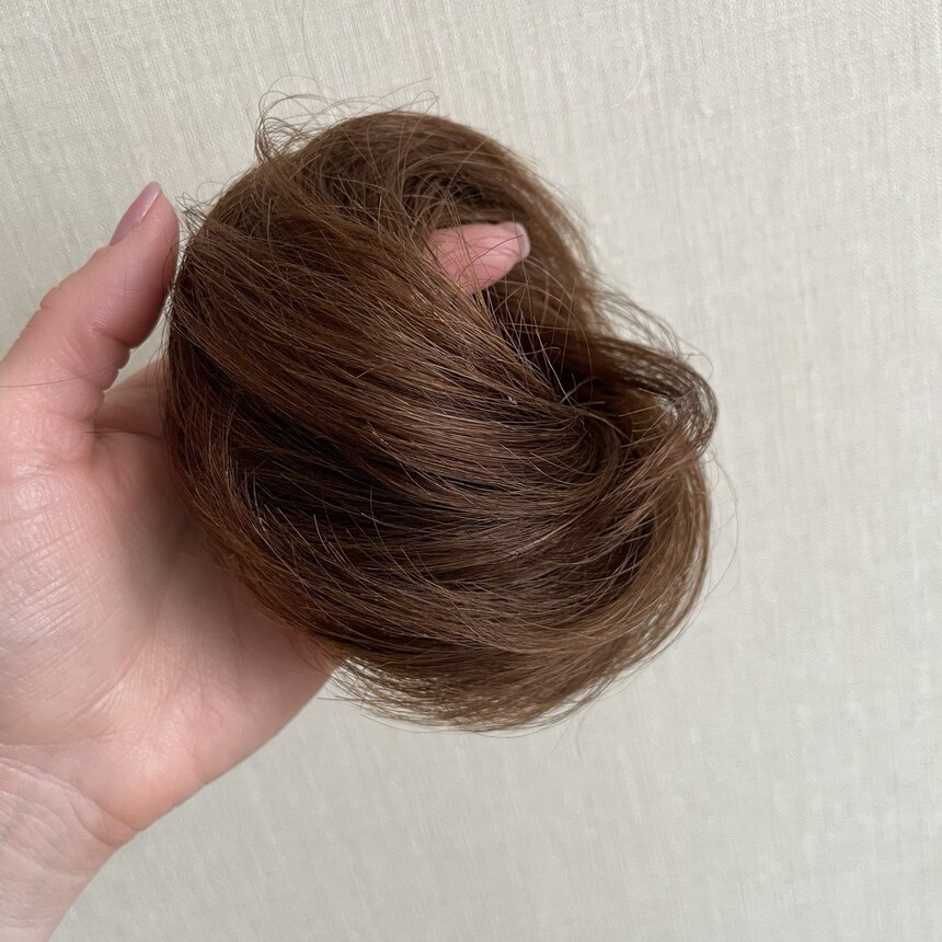 Резинка изготовлена из натуральных волос. Пучок повышенной густоты. Шиньон можно сушить феном, тонировать, мыть, выпрямлять, накручивать. С помощью резинки-шиньона Вы легко и быстро создадите красивую прическу. Оберните резинку вокруг хвоста или пучка - и прическа готова.