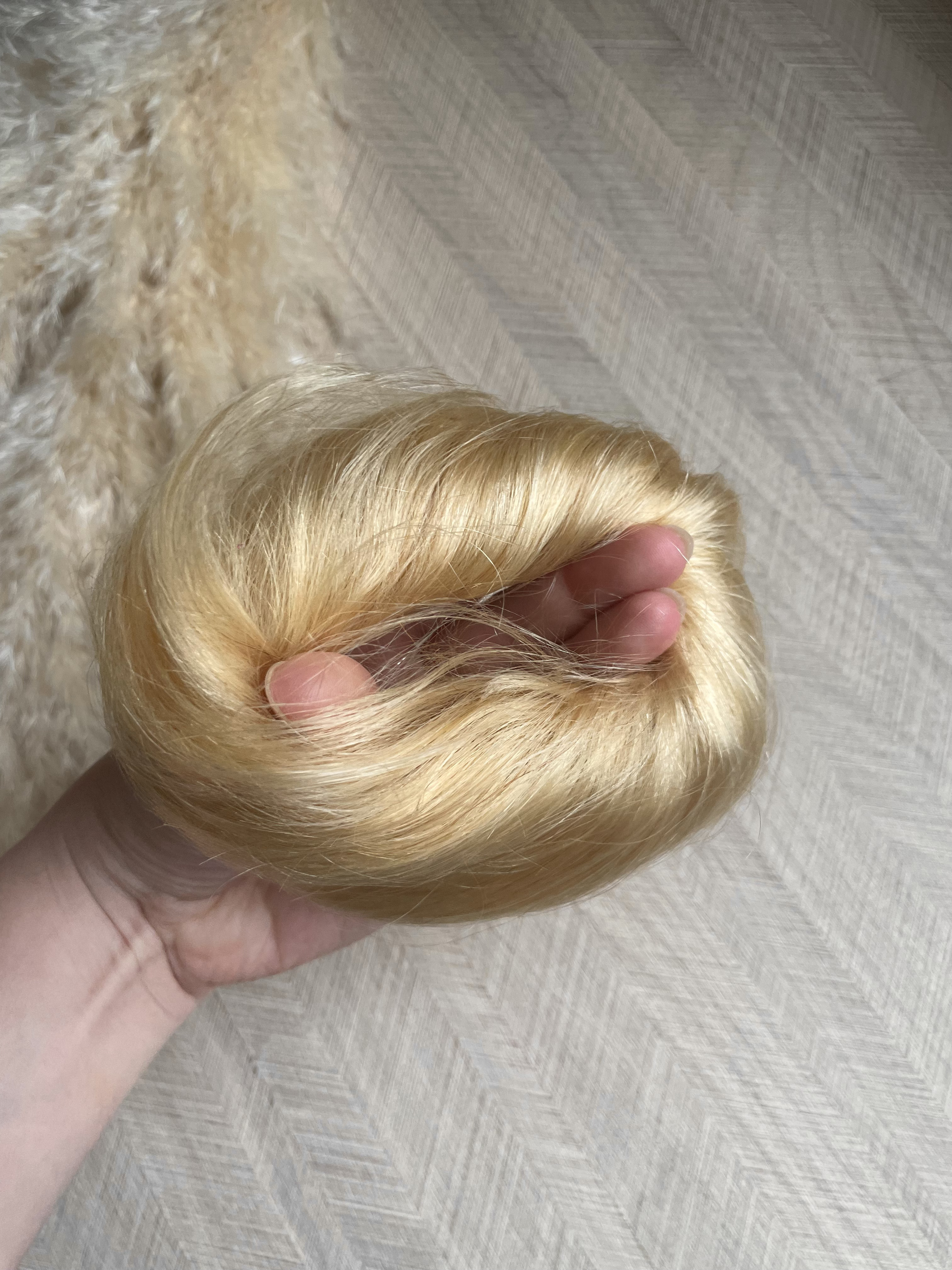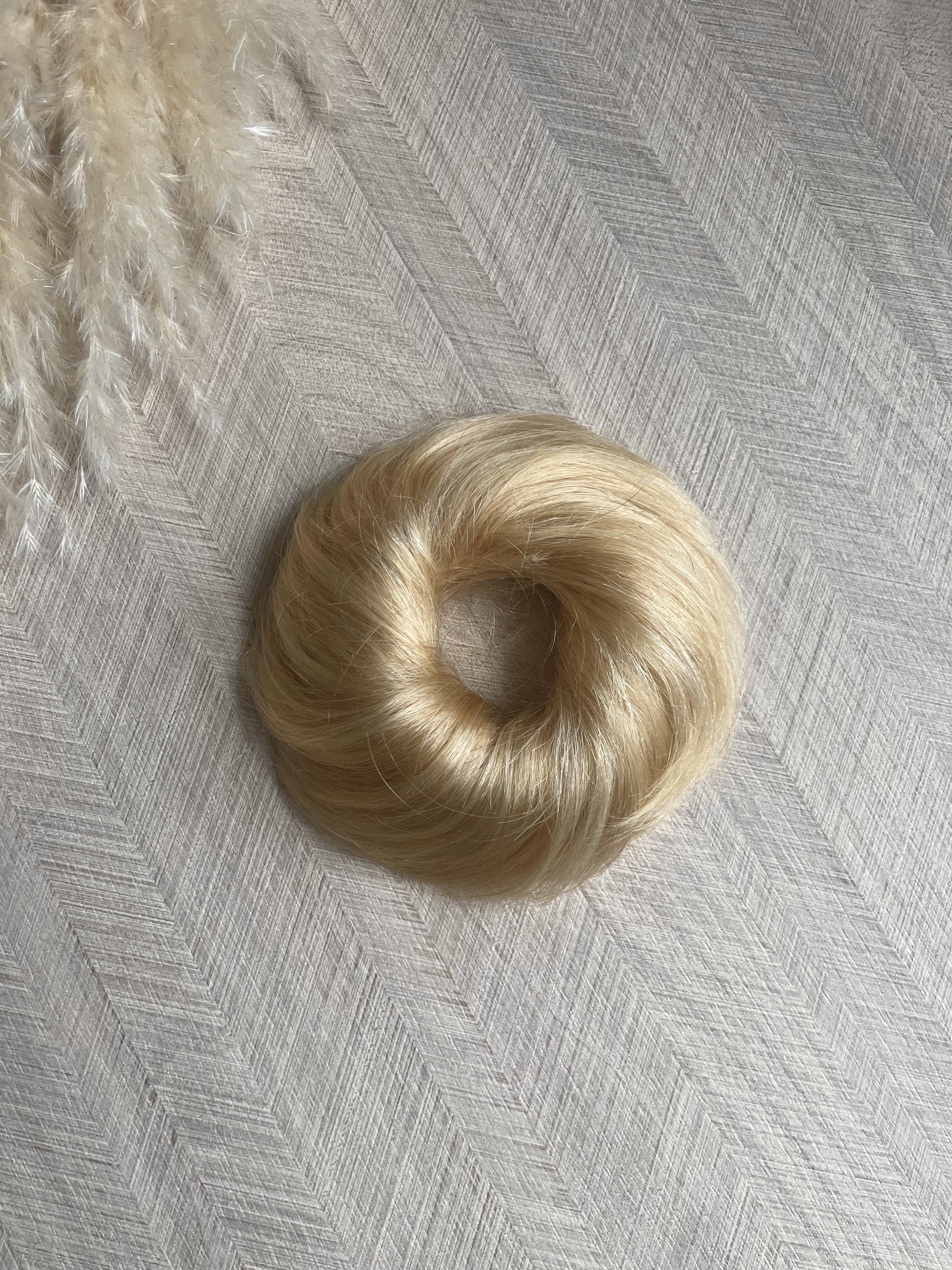 Резинка изготовлена из натуральных волос. Пучок повышенной густоты. Шиньон можно сушить феном, тонировать, мыть, выпрямлять, накручивать. С помощью резинки-шиньона Вы легко и быстро создадите красивую прическу. Оберните резинку вокруг хвоста или пучка - и прическа готова.