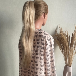 Хвост - шиньон из натуральных волос на крабе 40см - блонд #60 |