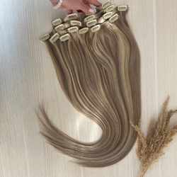 Натуральные волосы на заколках 55см 160г - мелированные |