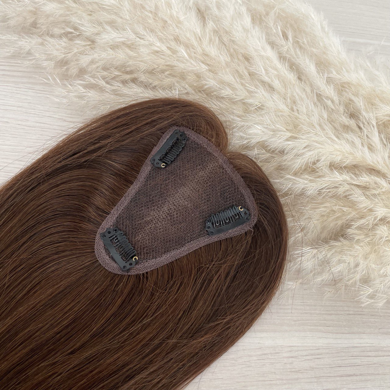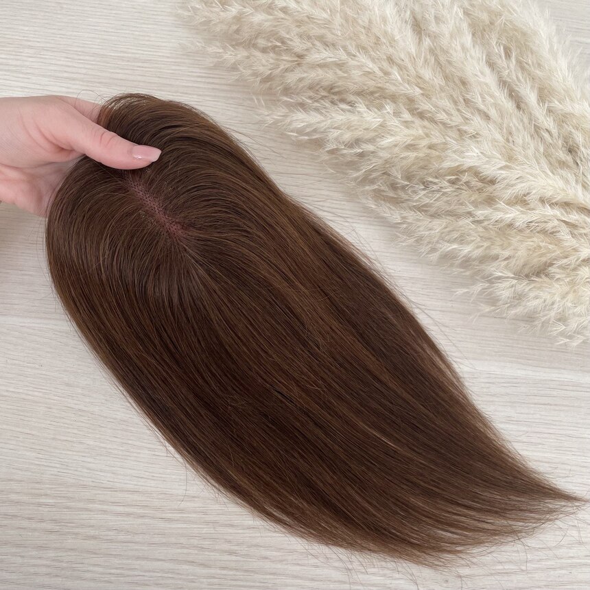 Накладка из натуральных волос на макушку длиной 20-25 см в оттенке #4 коричневый. Эта теменная накладка идеально подойдет для создания стильного образа, наполненного естественностью и элегантностью.