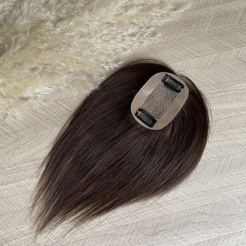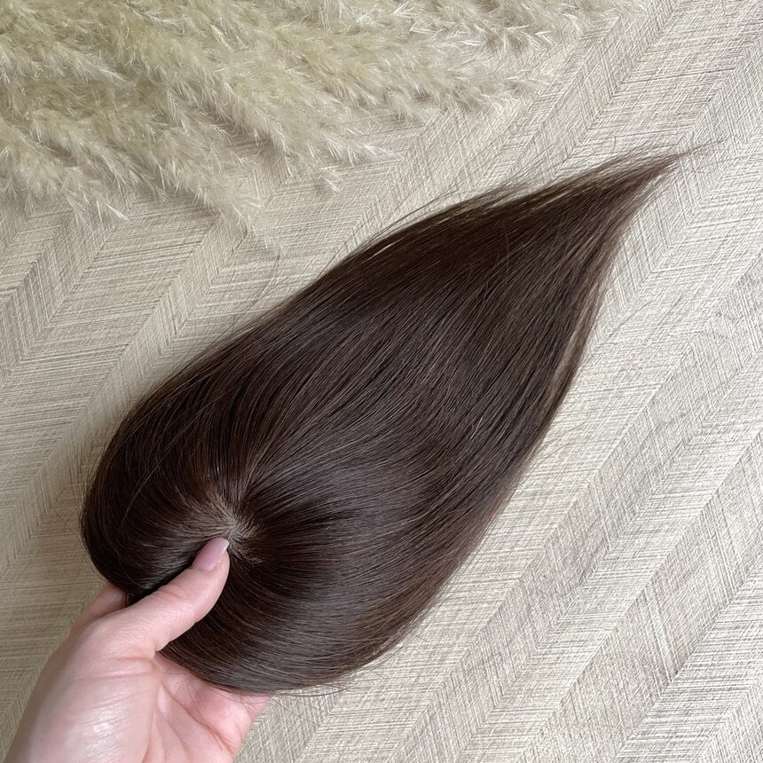 Накладка из натуральных волос на макушку длиной 18 см в коричневом оттенке #4. Эта теменная накладка идеально подойдет для создания стильного образа, наполненного естественностью и элегантностью.