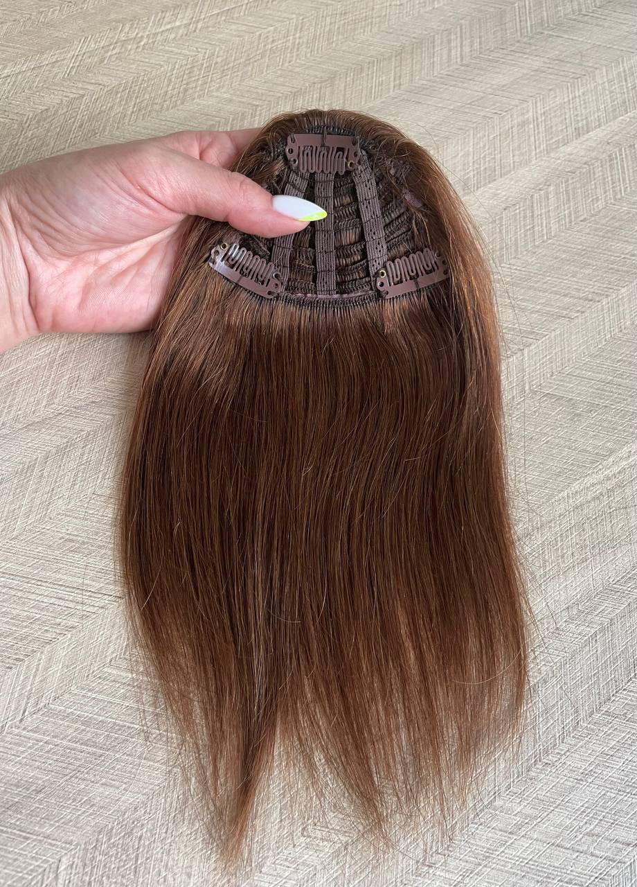 Челка на заколках из натуральных волос без боковых прядей.