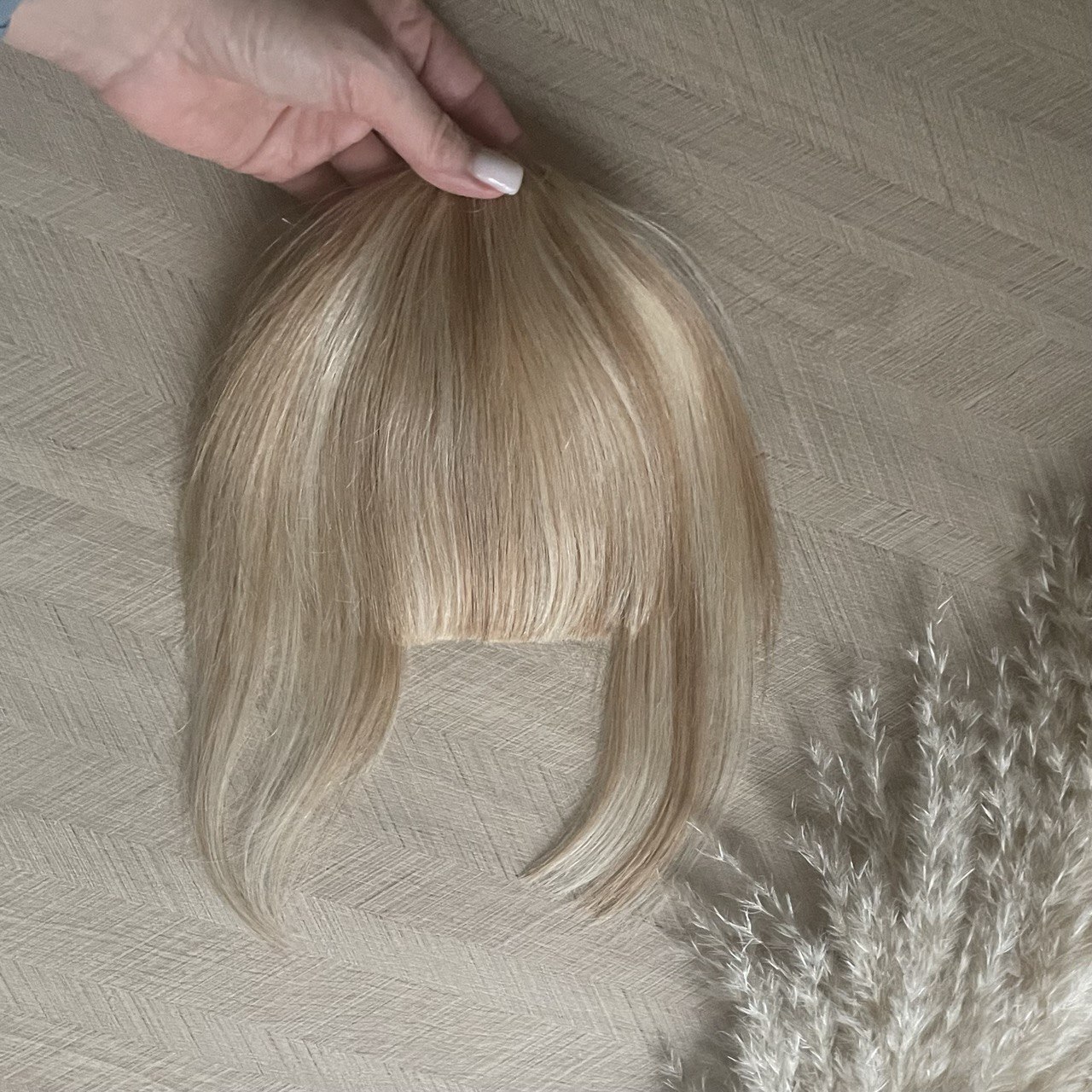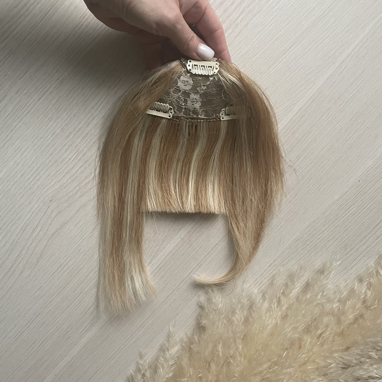 Накладная чёлка на заколках из натуральных волос с боковыми прядями.