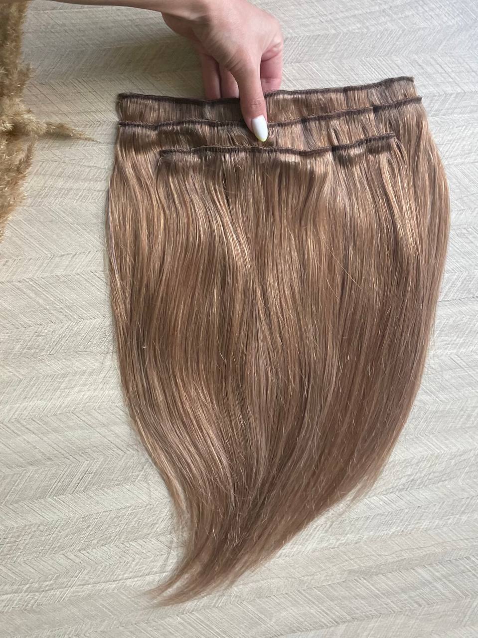 Комплект состоит из трех накладных широких прядей на заколках. Волосы, шириной 15 см, крепятся на затылочной части, а также по боковой части головы. Трехпрядный набор легок в использовании. При этом волосы распределяются по голове естественно. Заколочки крепкие с силиконовой прослойкой, которая защищает свои волосы от повреждения. Волосы можно мыть, завивать, стричь, окрашивать, тонировать - делать все то же самое, что и со своими волосами.