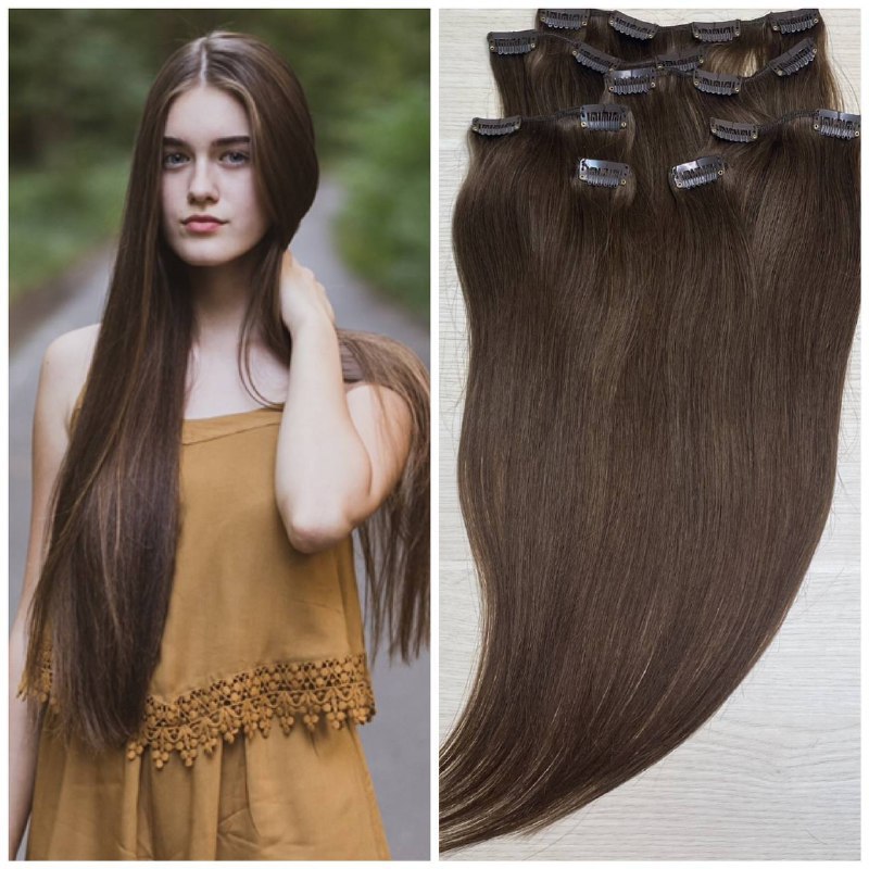 Натуральные волосы на заколках 50 см 100г - каштановые #6