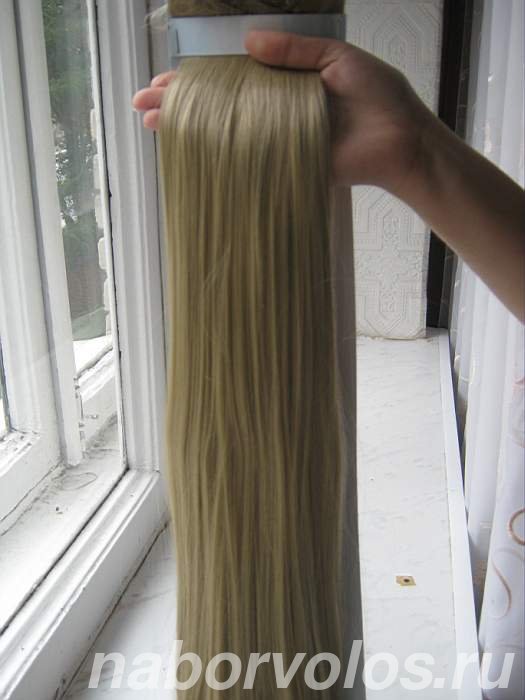 Волосики хорошие, густые, гладкие, цвет немного пепельнее чем на фото, заколки просто супер, длина почти до попы, закручиваются хорошо, единственный минус, это когда свои пушатся чуть, эти же очень гладкие, либо свои должны быть подлинее лопаток! Спасибо, впринципе довольна!