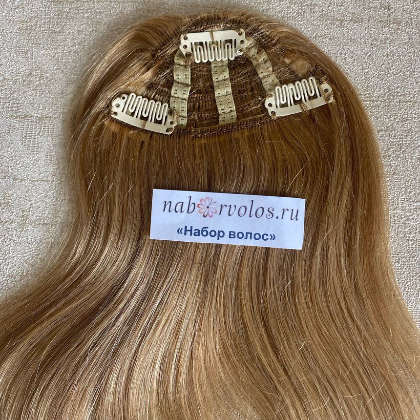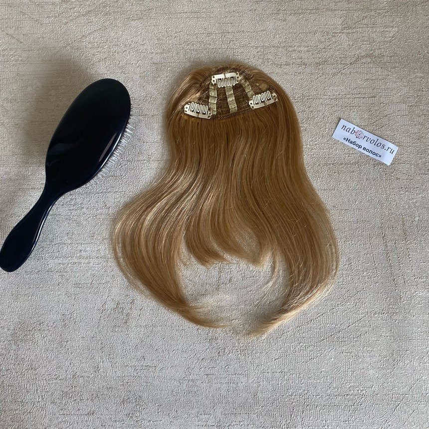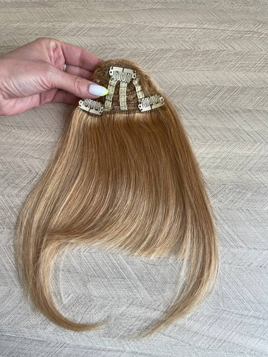 Челка накладная натуральная на заколках - карамельный блонд #27