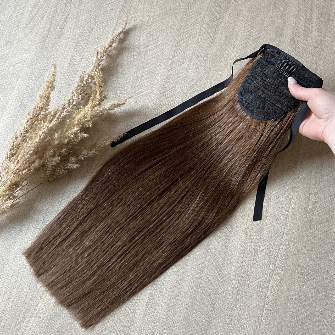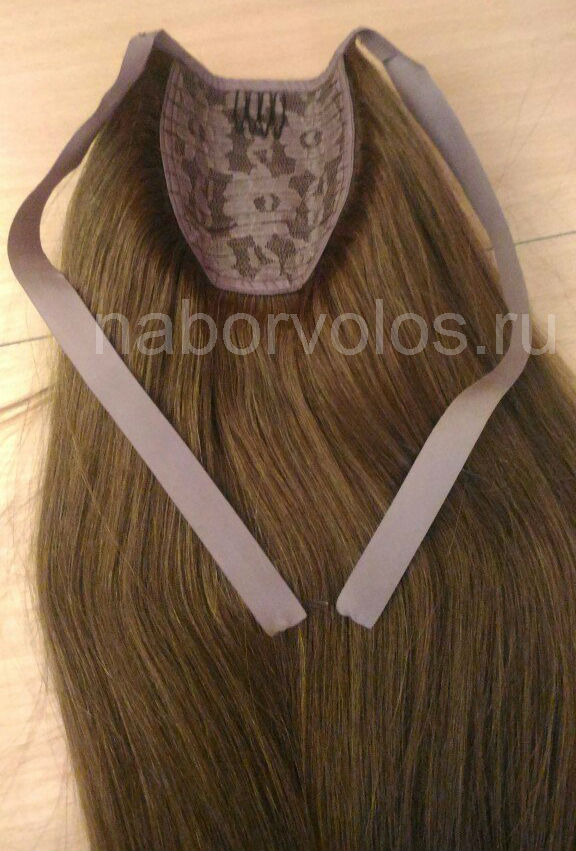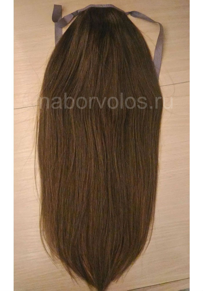 Хвост из натуральных волос 50см 100г - темно-русый #6