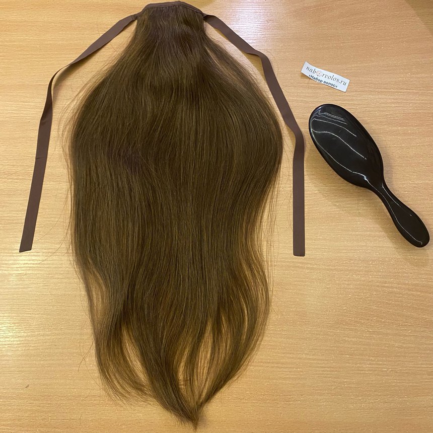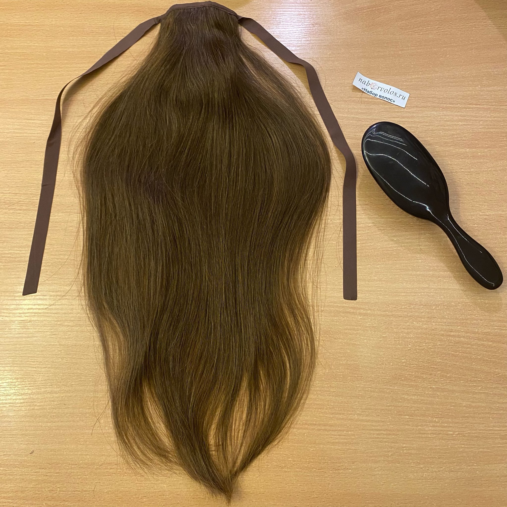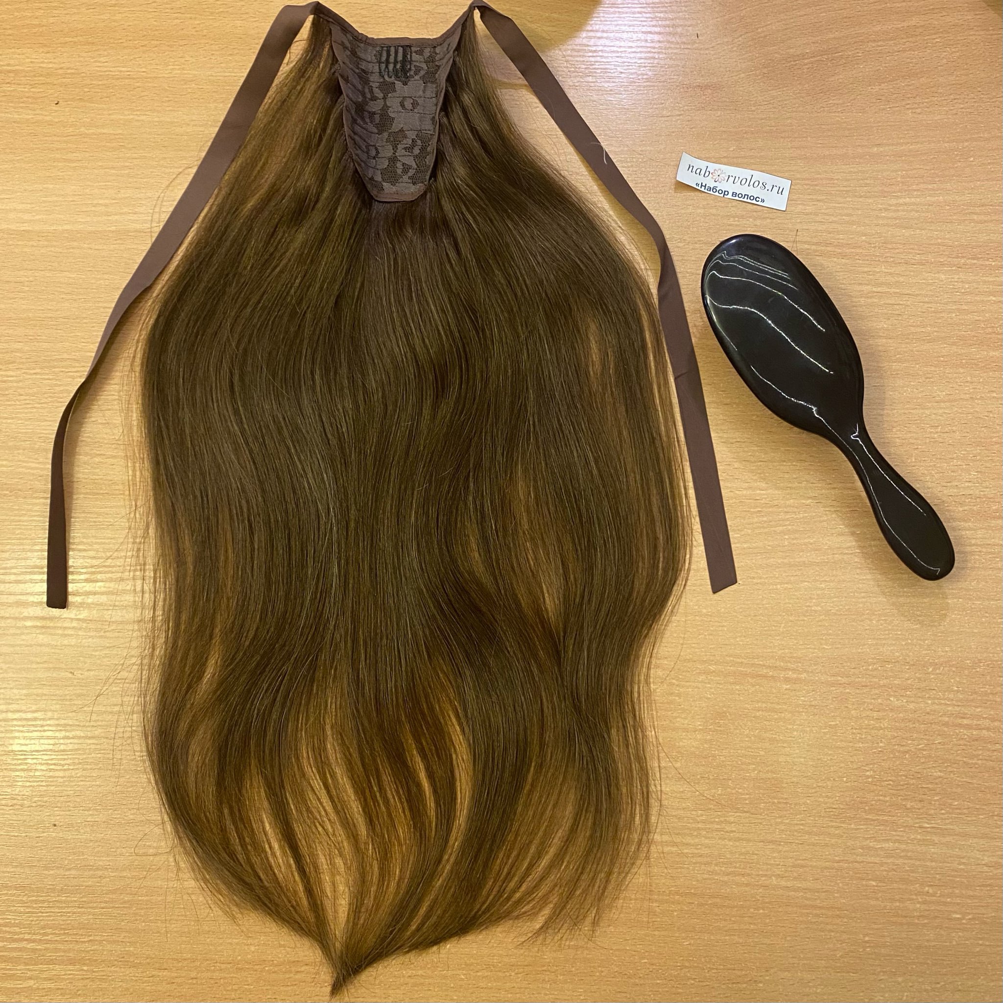 Хвост имеет простое крепление на ленте. Закрепляется быстро и легко, хорошо держится. Волосы полностью натуральные без примесей, имеют красивый русый оттенок. Благодаря высокому качеству волос, хвосты долго носятся и хорошо выглядят при правильном уходе за ними. Волосы можно мыть, завивать, выпрямлять- делать все то же самое, что со своими волосами. Бигуди, плойки, утюжки также подойдут для укладки. Подойдет для вечерних причесок и ежедневной носки.