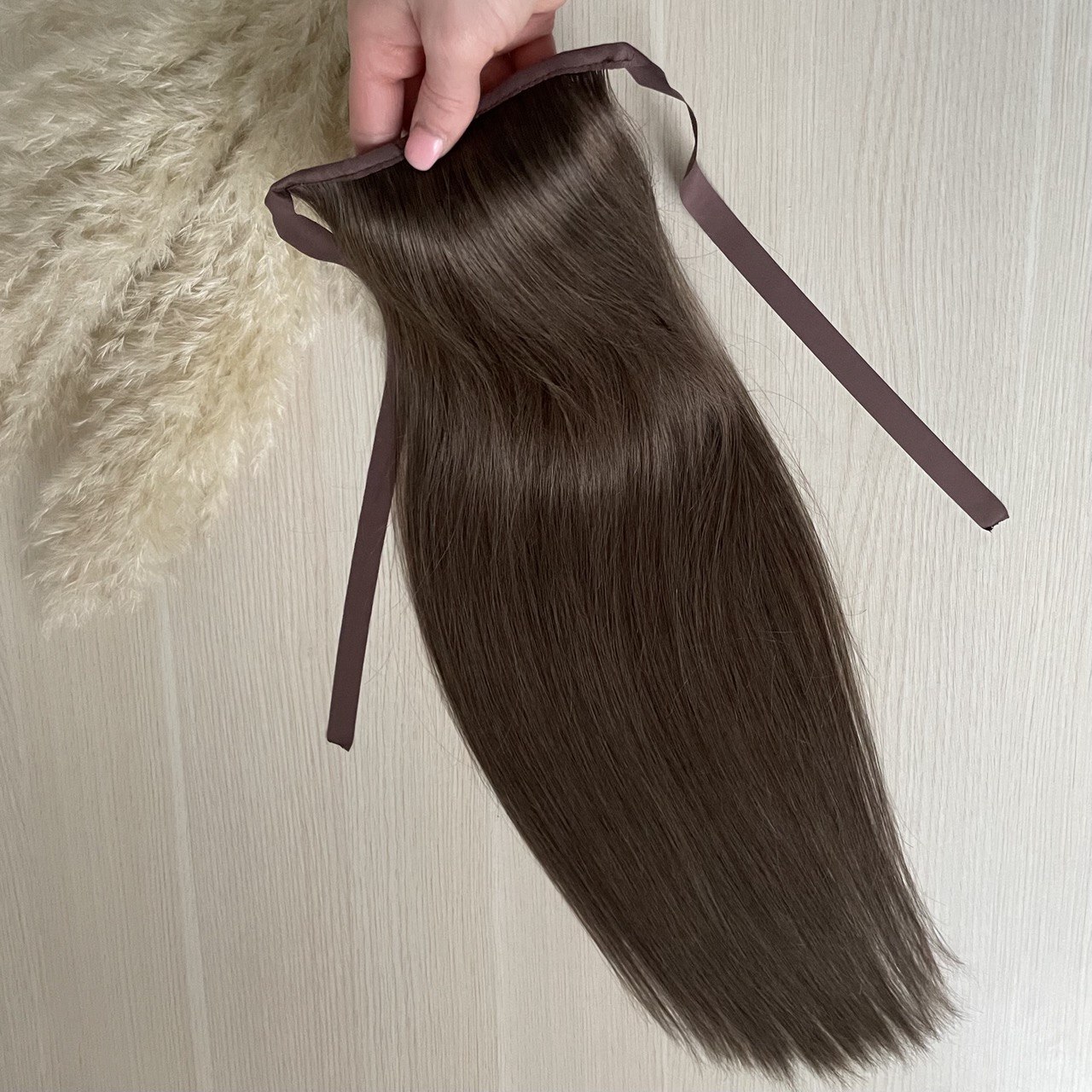 Роскошный хвост на ленте темно-русого цвета