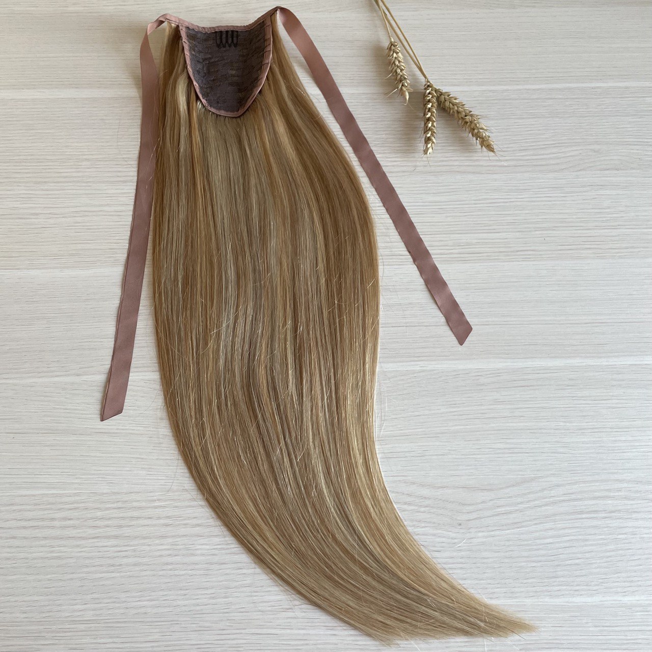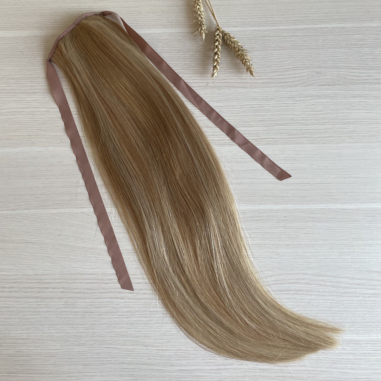 Хвост из натуральных волос 60см - светло-мелированный #18/613