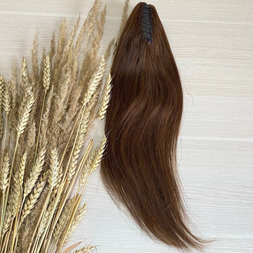Хвост из натуральных волос на крабе 40см - шоколад #4