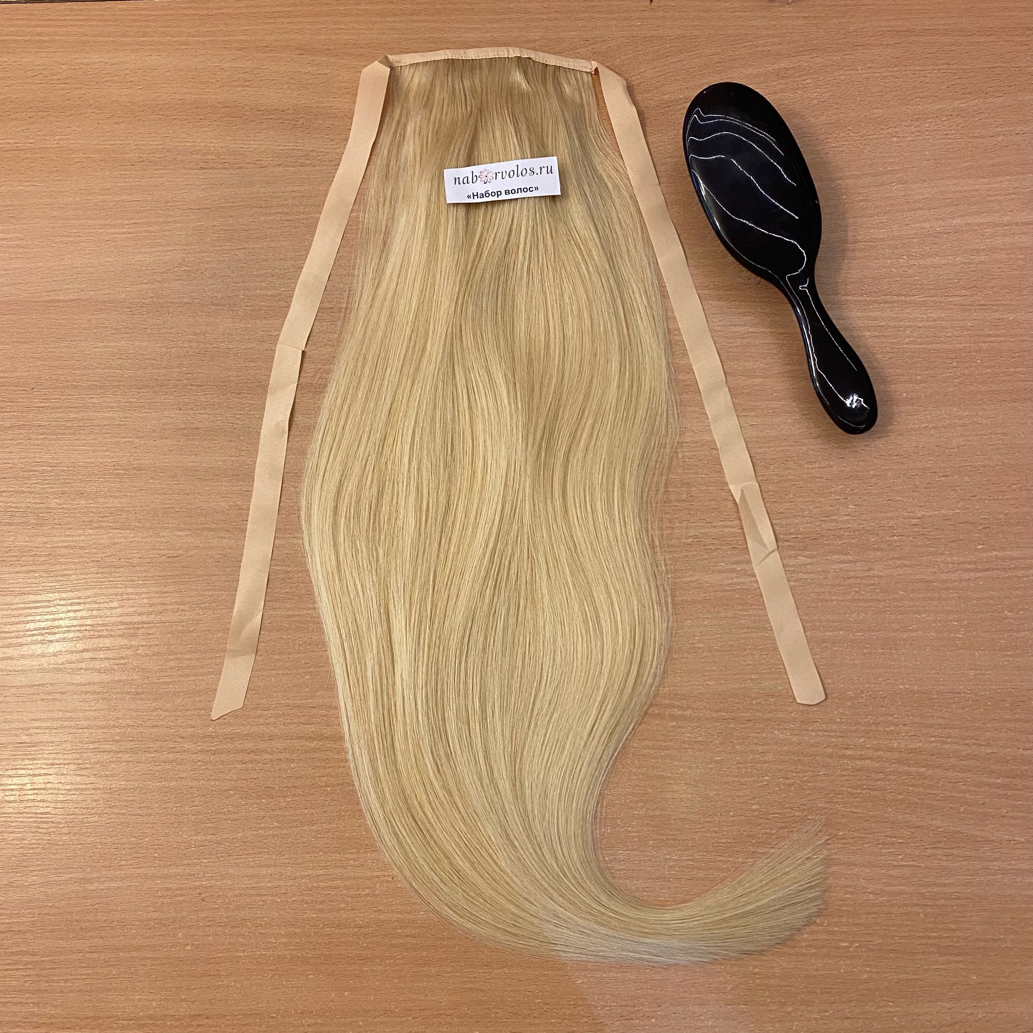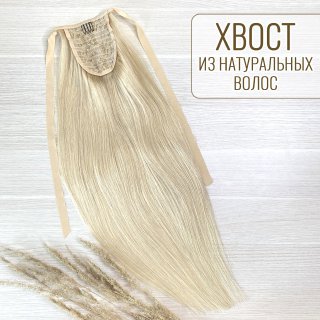 Хвост из натуральных волос 60см 100г - пепельный блонд #60