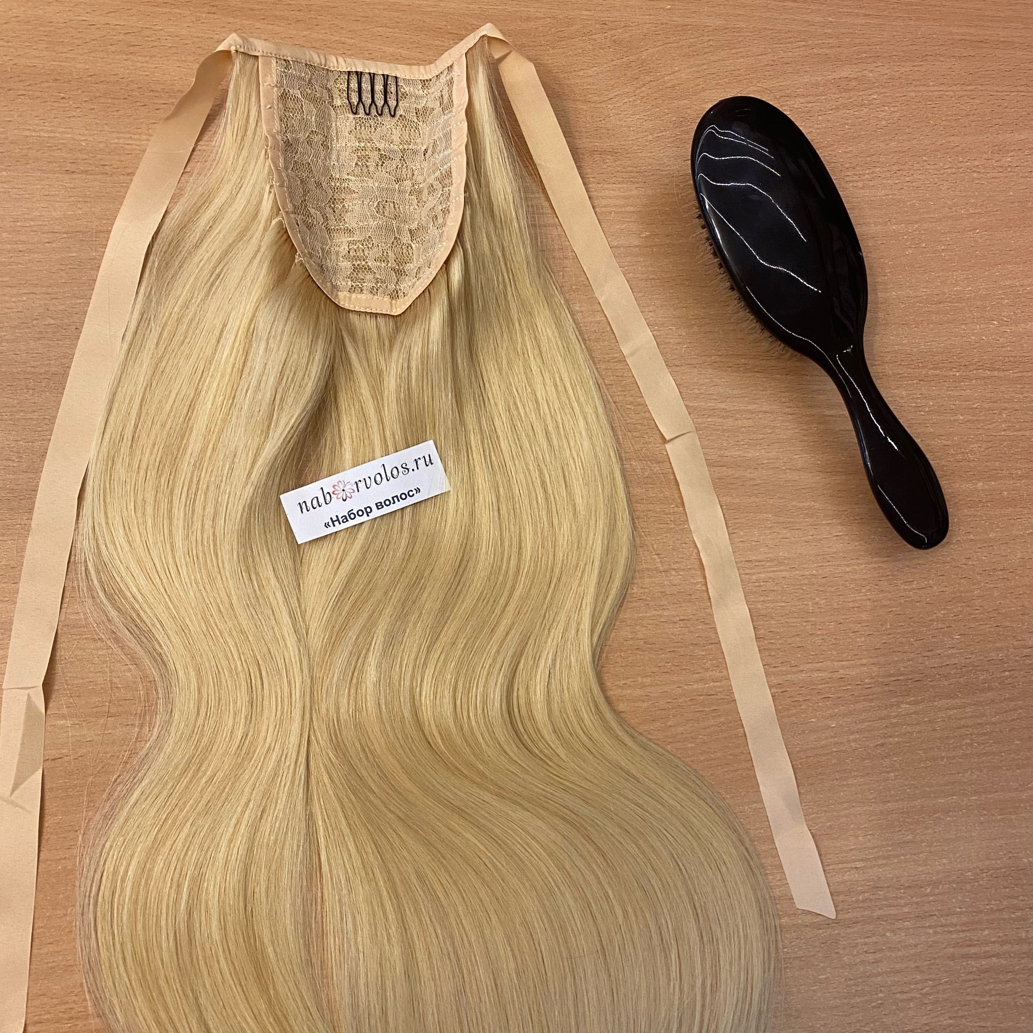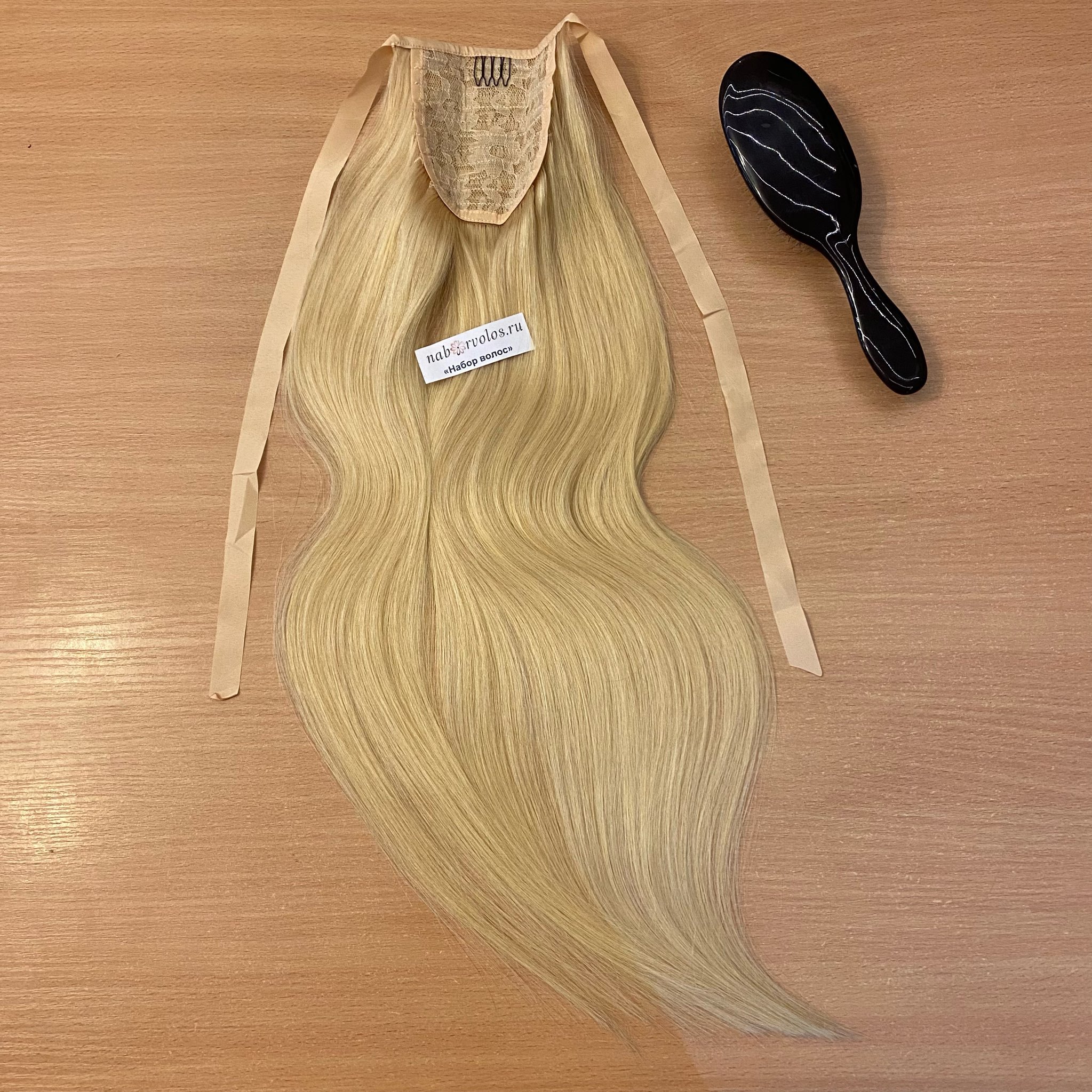 Роскошный хвост на ленте цвета блонд