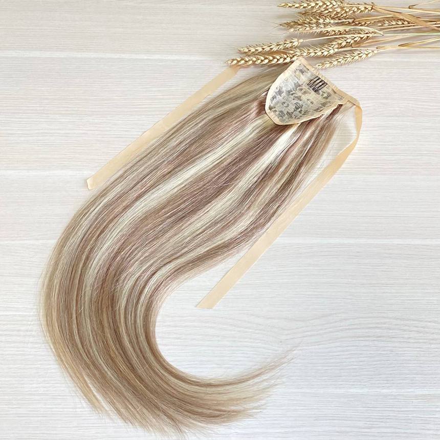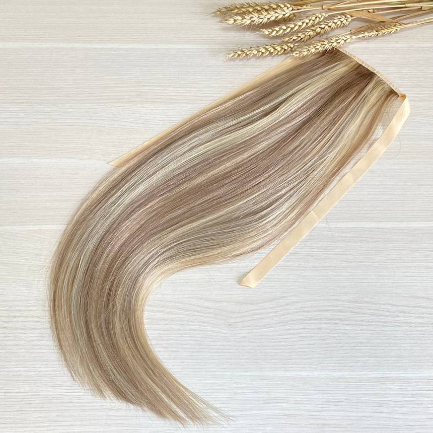 Хвост накладной из натуральных волос 60см - светло-мелированный #10/613