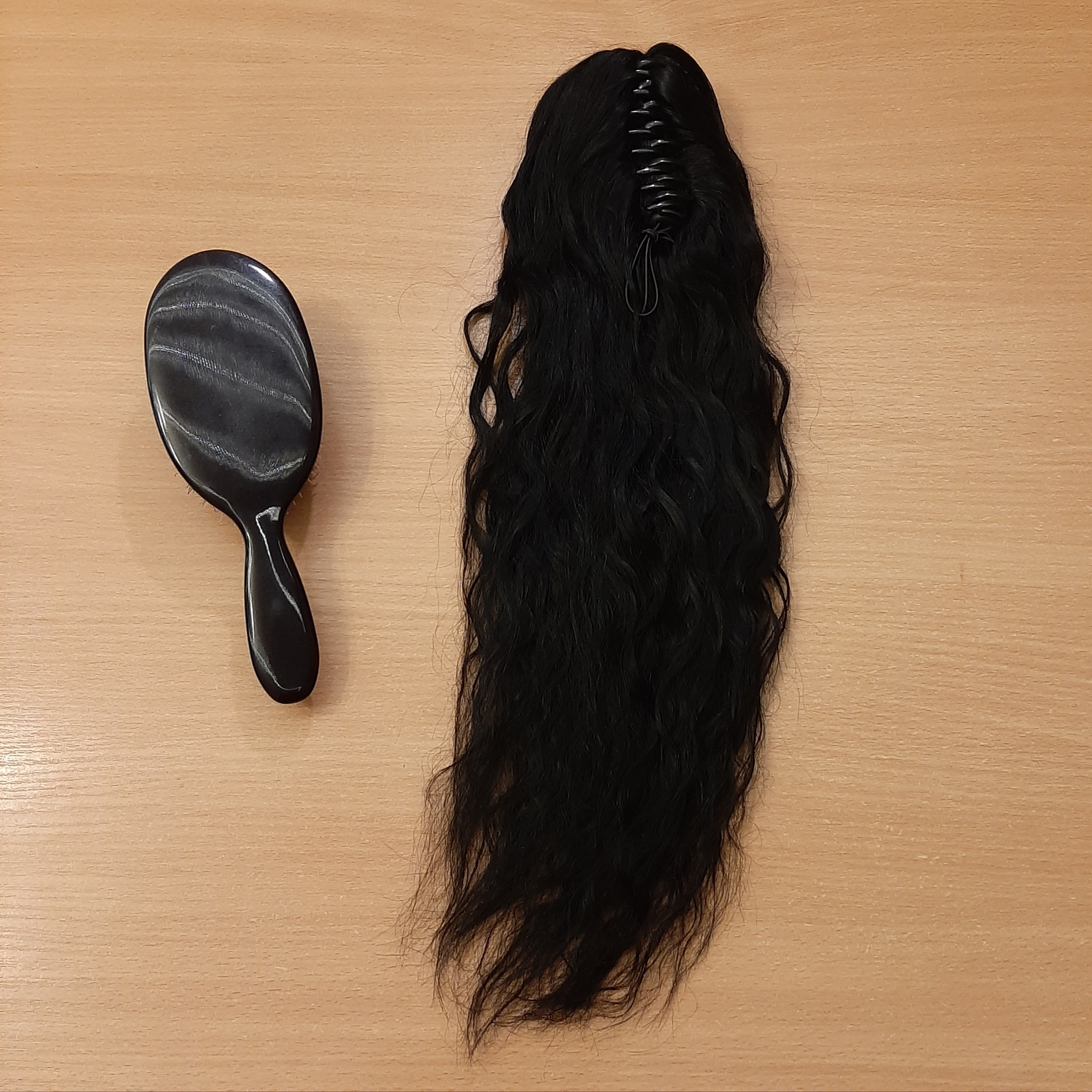 Хвост - шиньон на крабе из натуральных волос 50см 100г - черный #1