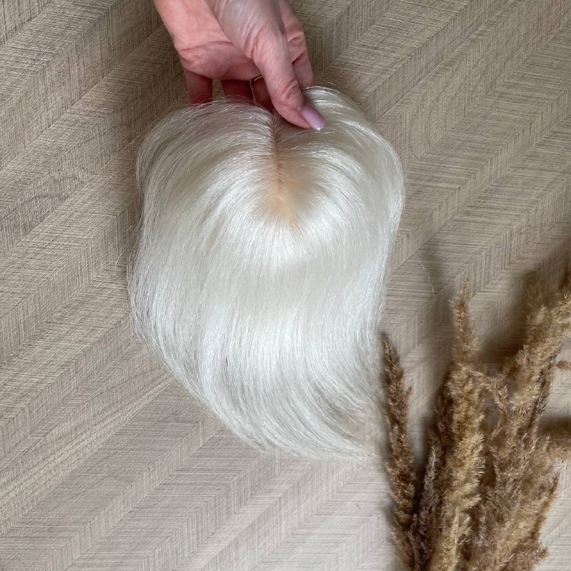 Мини накладка из натуральных волос на теменную зону - платиновый блонд