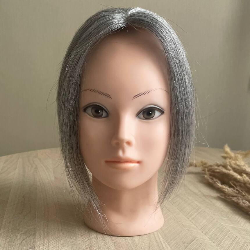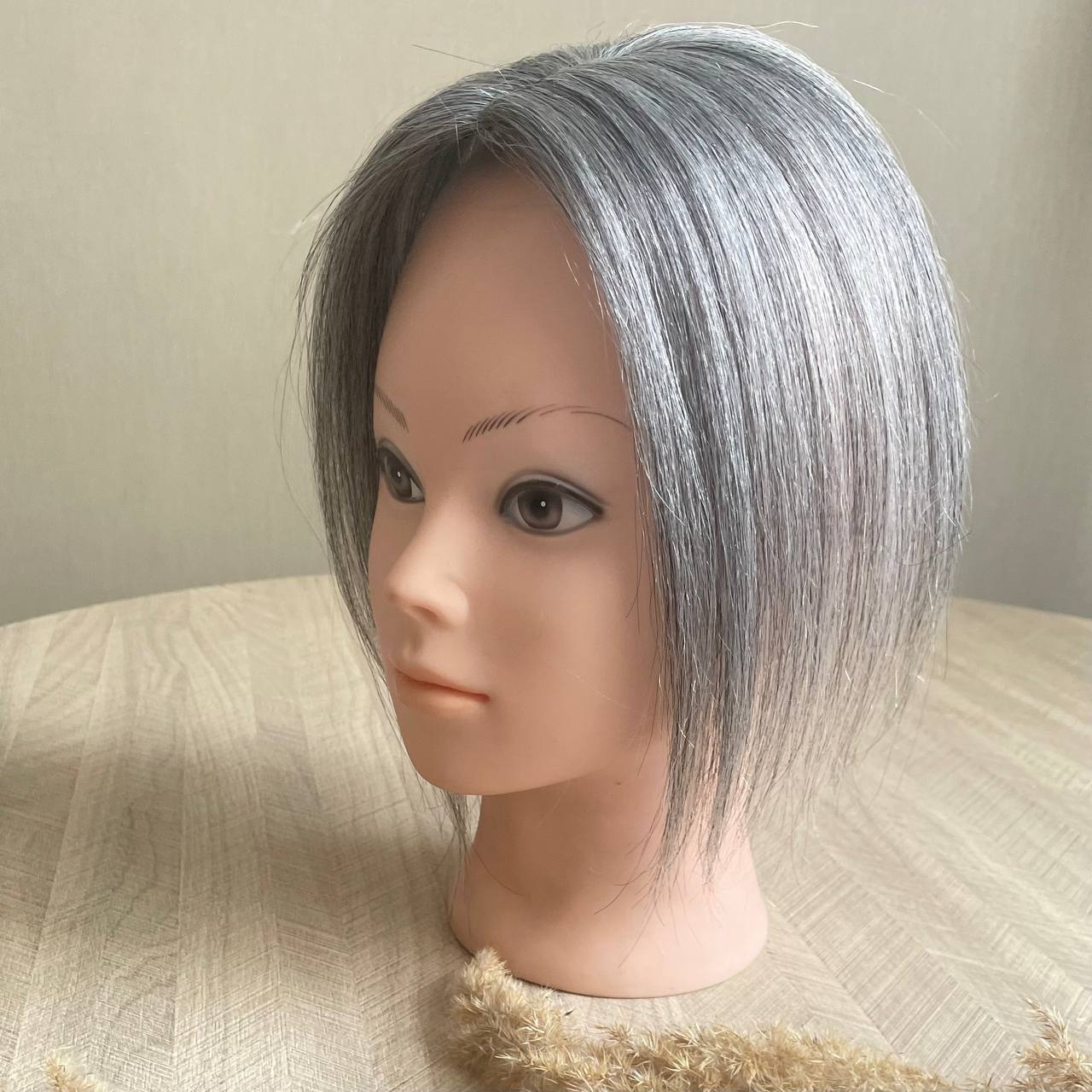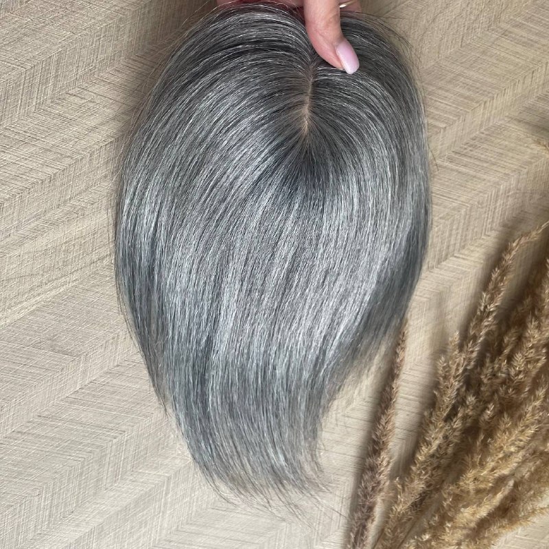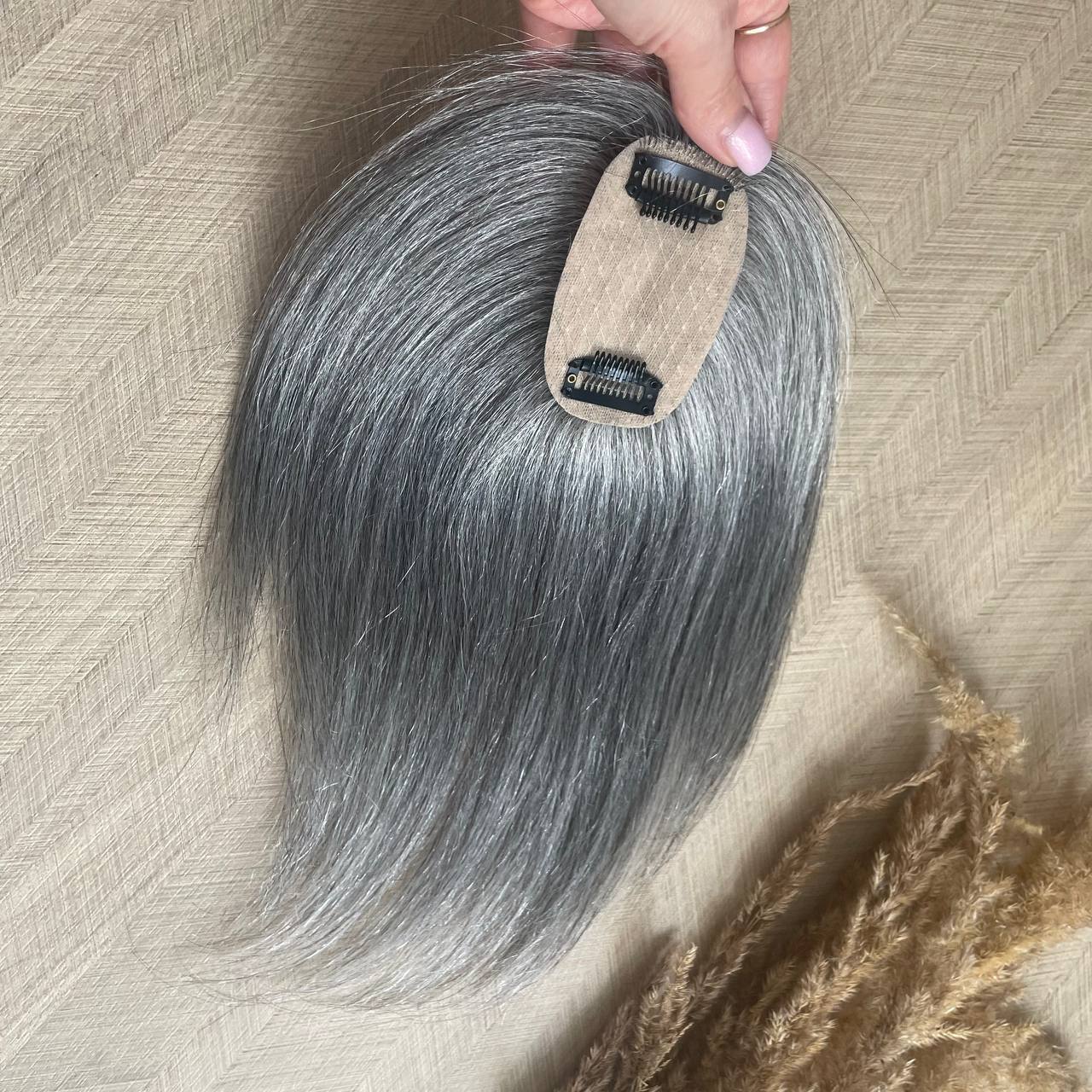 Мини накладка из натуральных волос на теменную зону - темно-седой