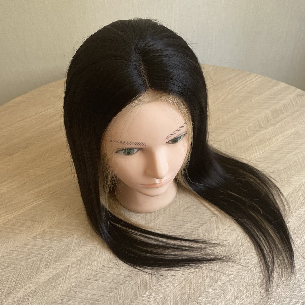 С полной имитацией кожи головы. Повышенная густота. Пробор можно делать на любую сторону. Волосы 100% натуральные, можно тонироватьть, мыть, укладывать.