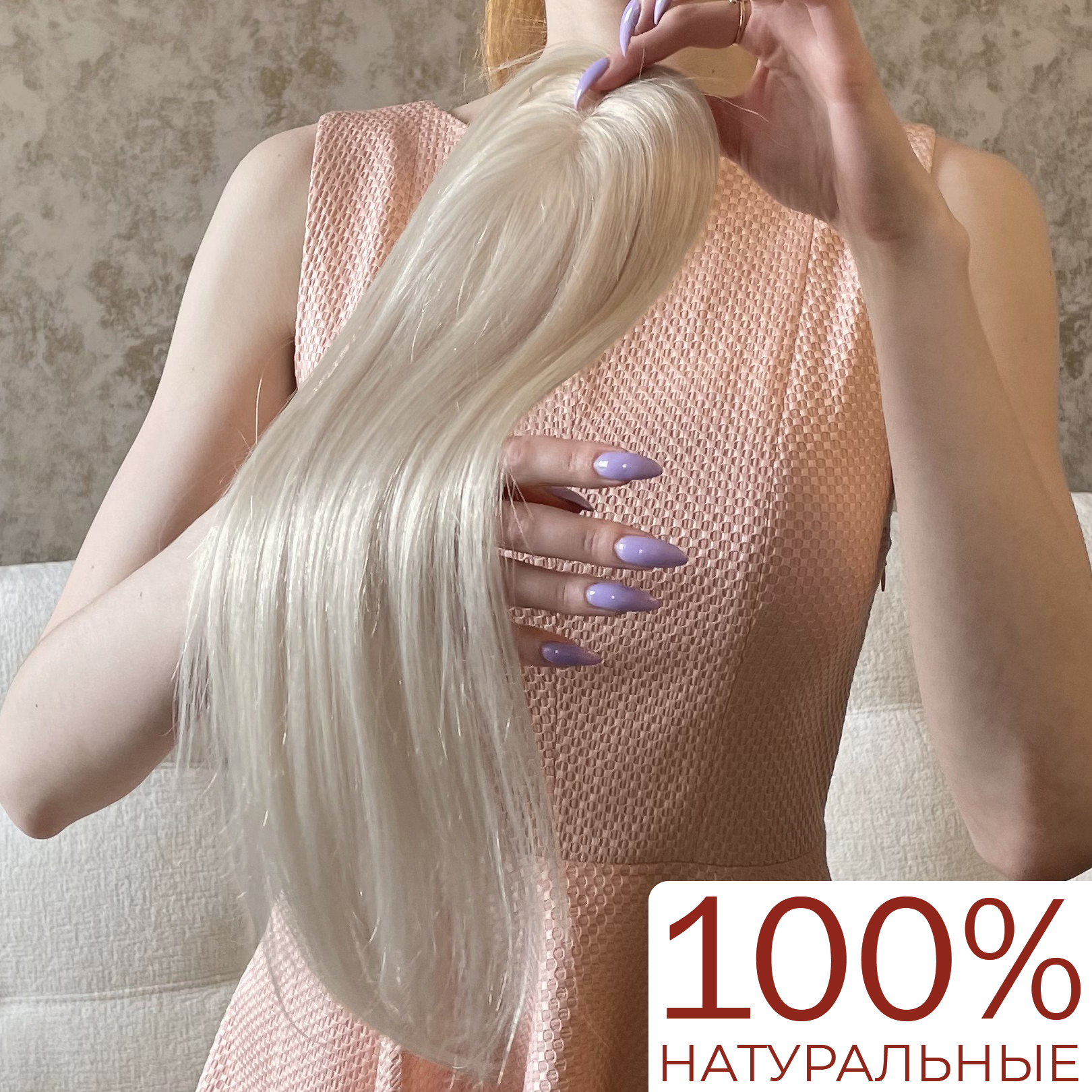 Накладка из натуральных волос 12х6 см - пепельный блонд #60