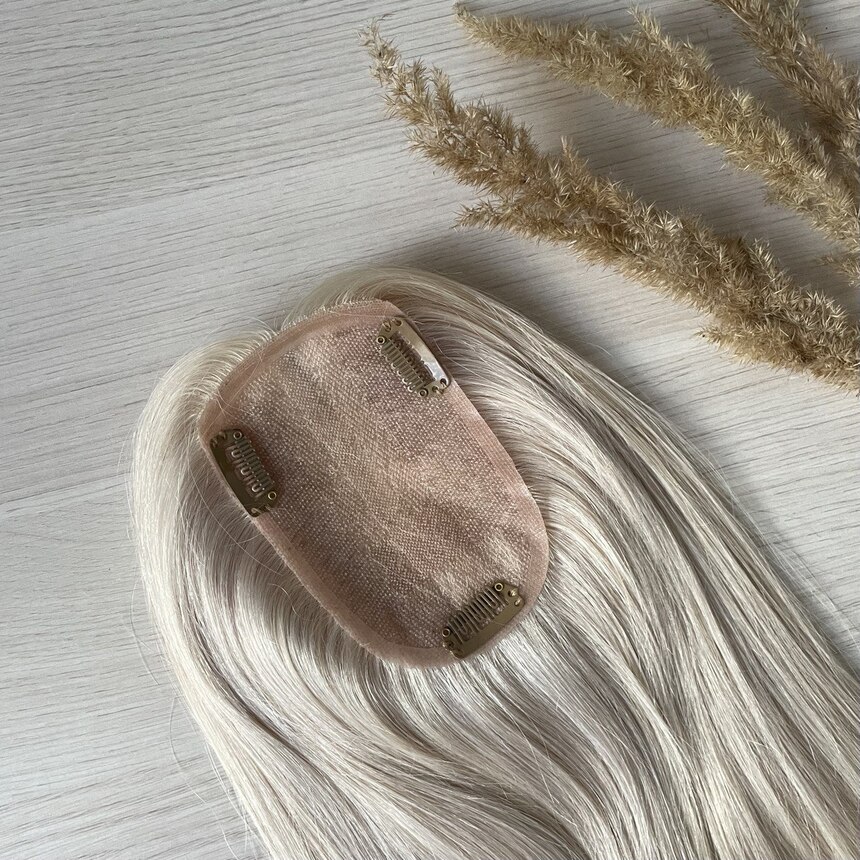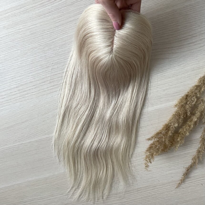Накладка из натуральных волос повышенной густоты 12х8 см - серебристый блонд #60c