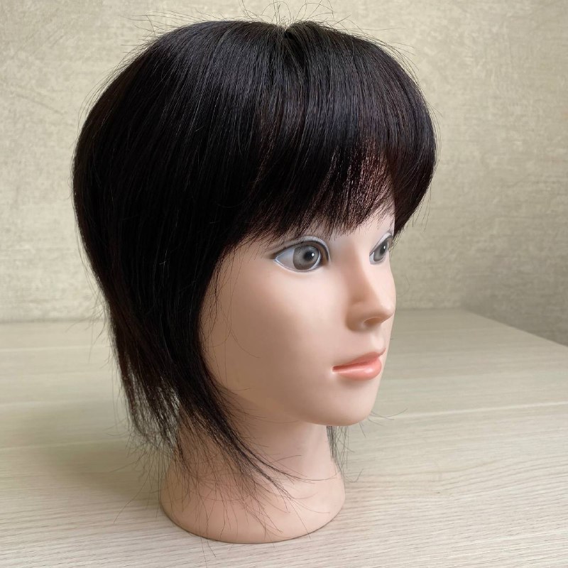 Накладка из натуральных волос с челкой 10х12 см - черный #1b