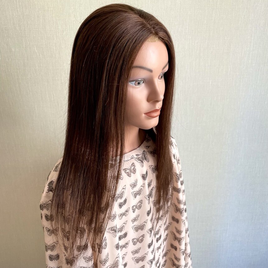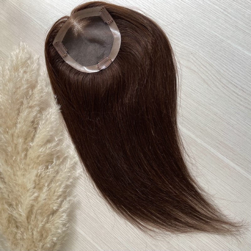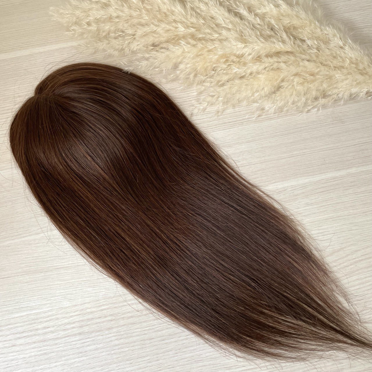 Накладка на заколках из натуральных волос 12х12см коричневый #4