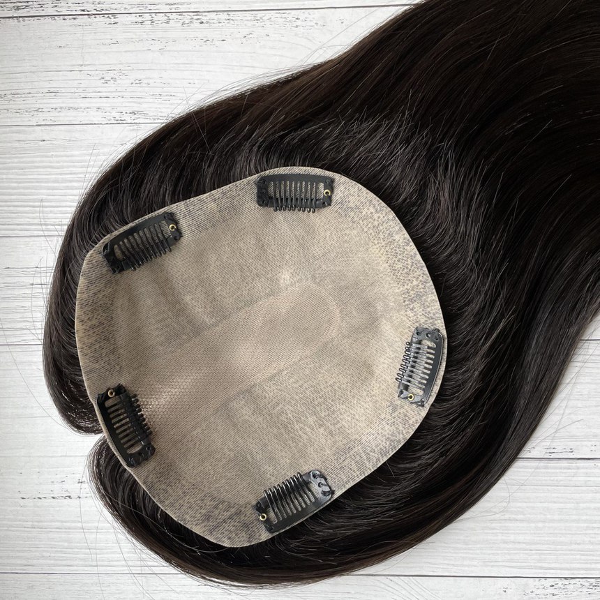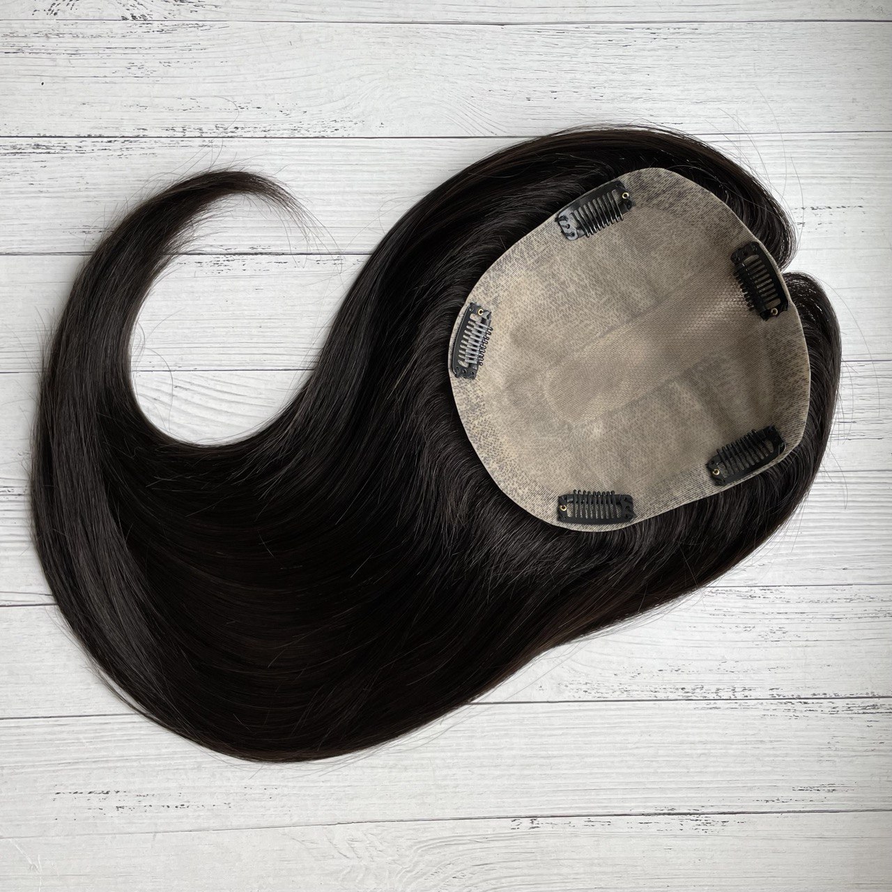 Накладка на заколках из натуральных волос 15х16см черный с коричневым #1b