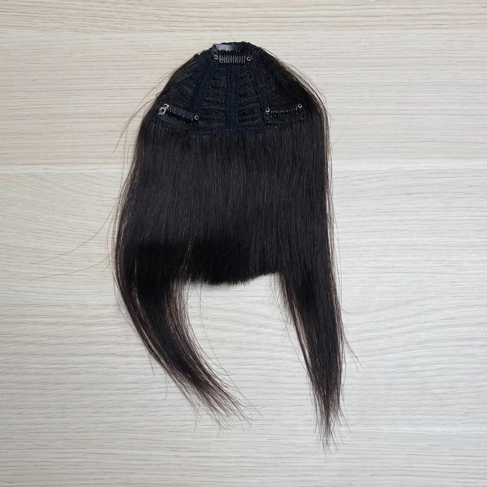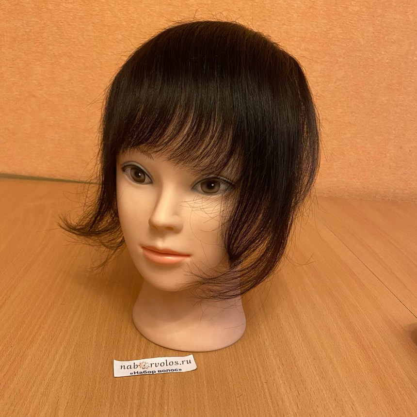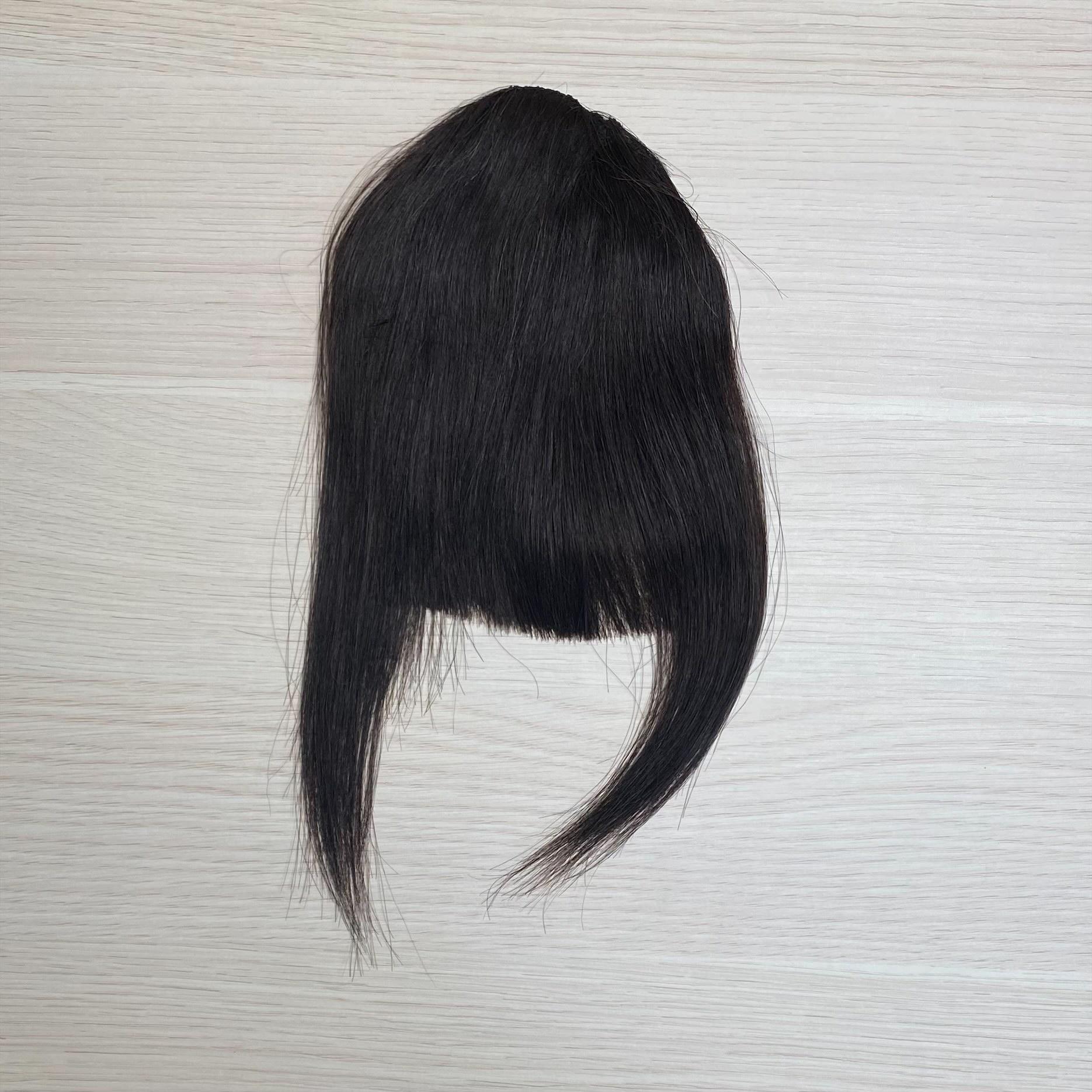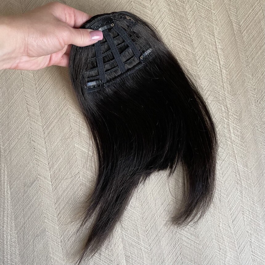 Накладная челка на заколках из натуральных волос - черный c шоколадным отливом #1b