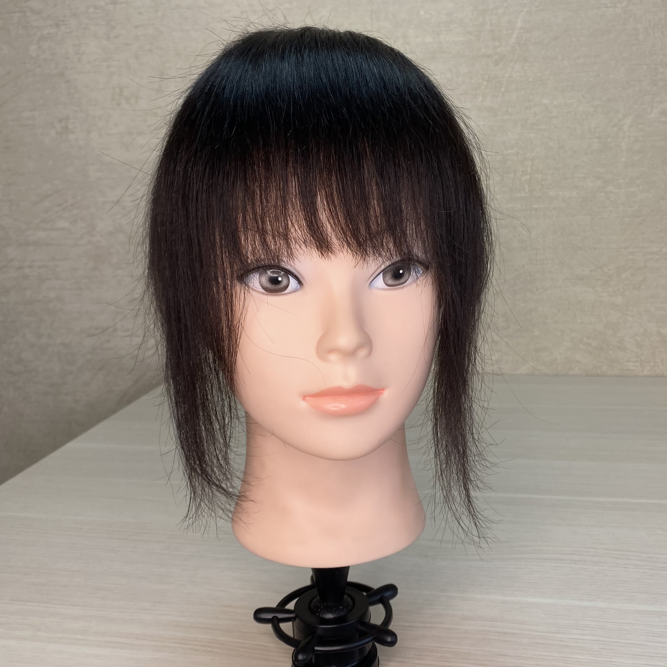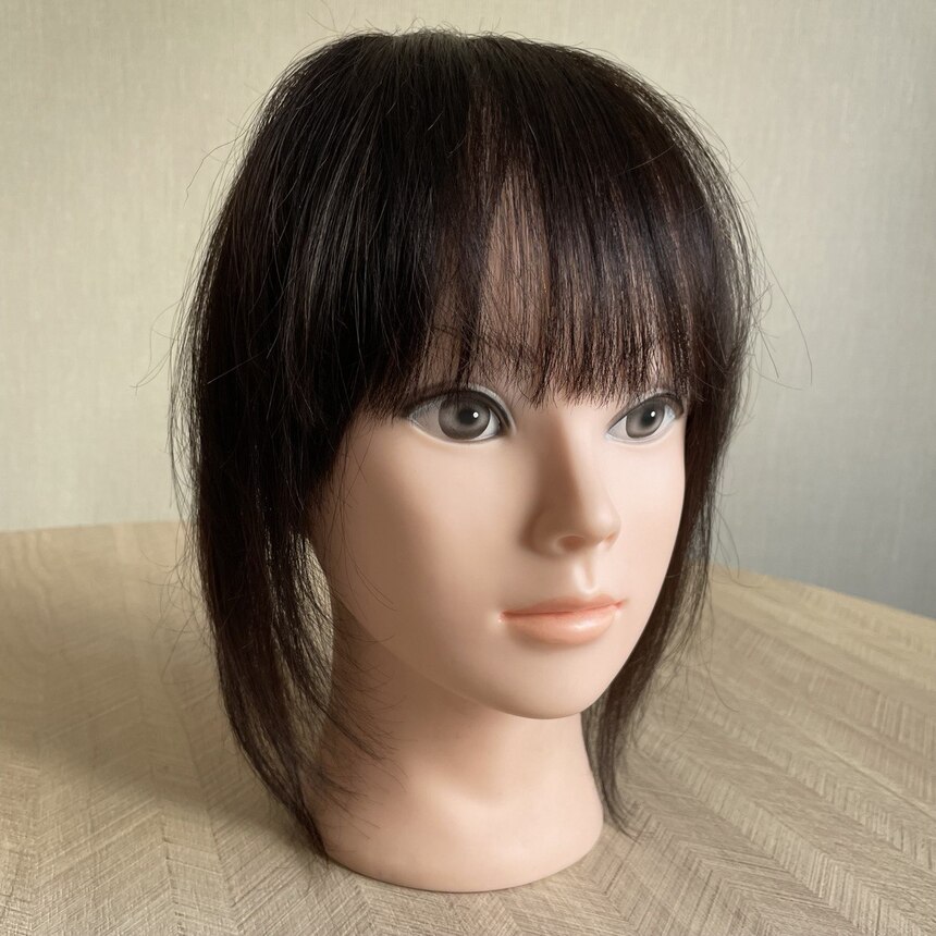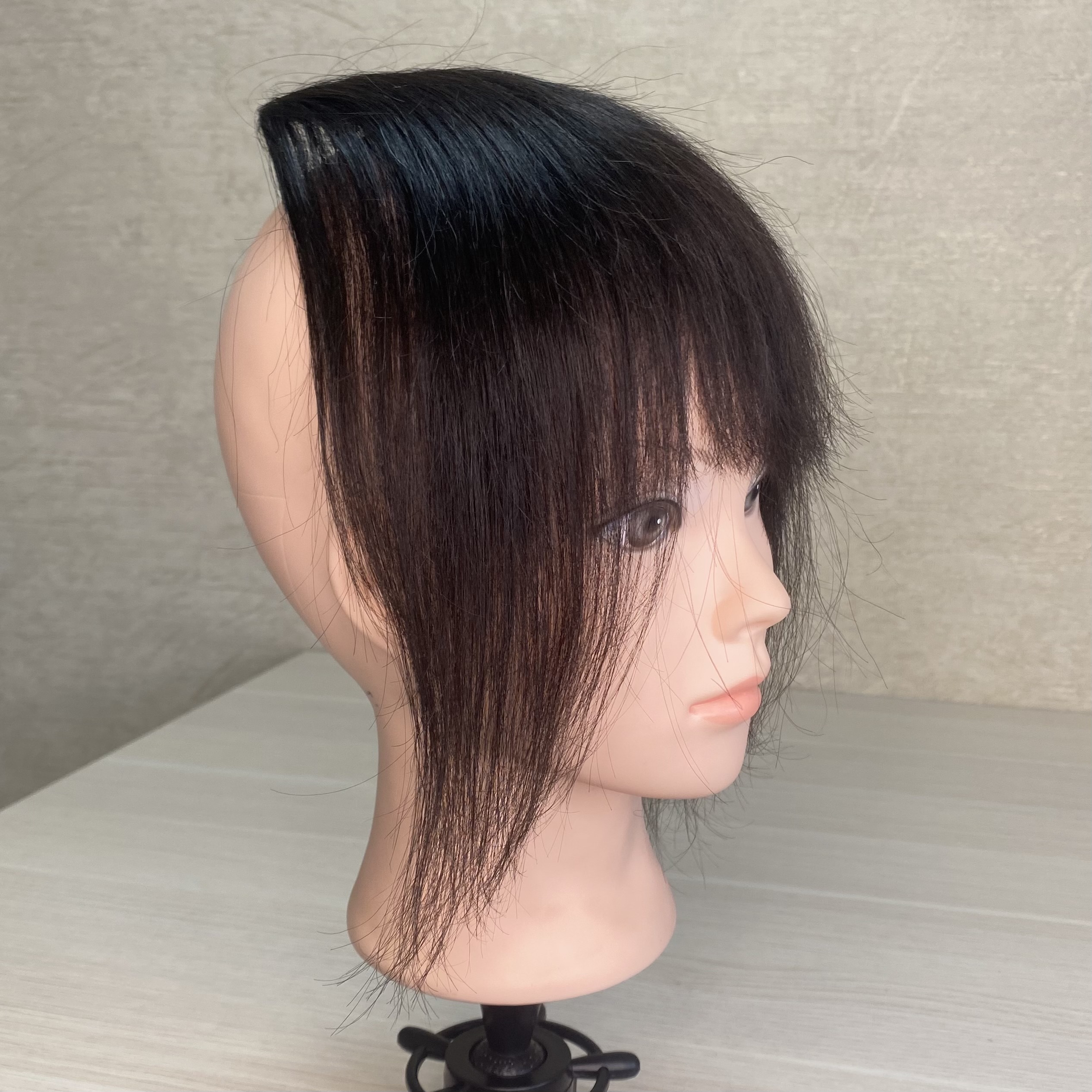 Накладная челка на заколках из натуральных волос - черный c шоколадным отливом #1b