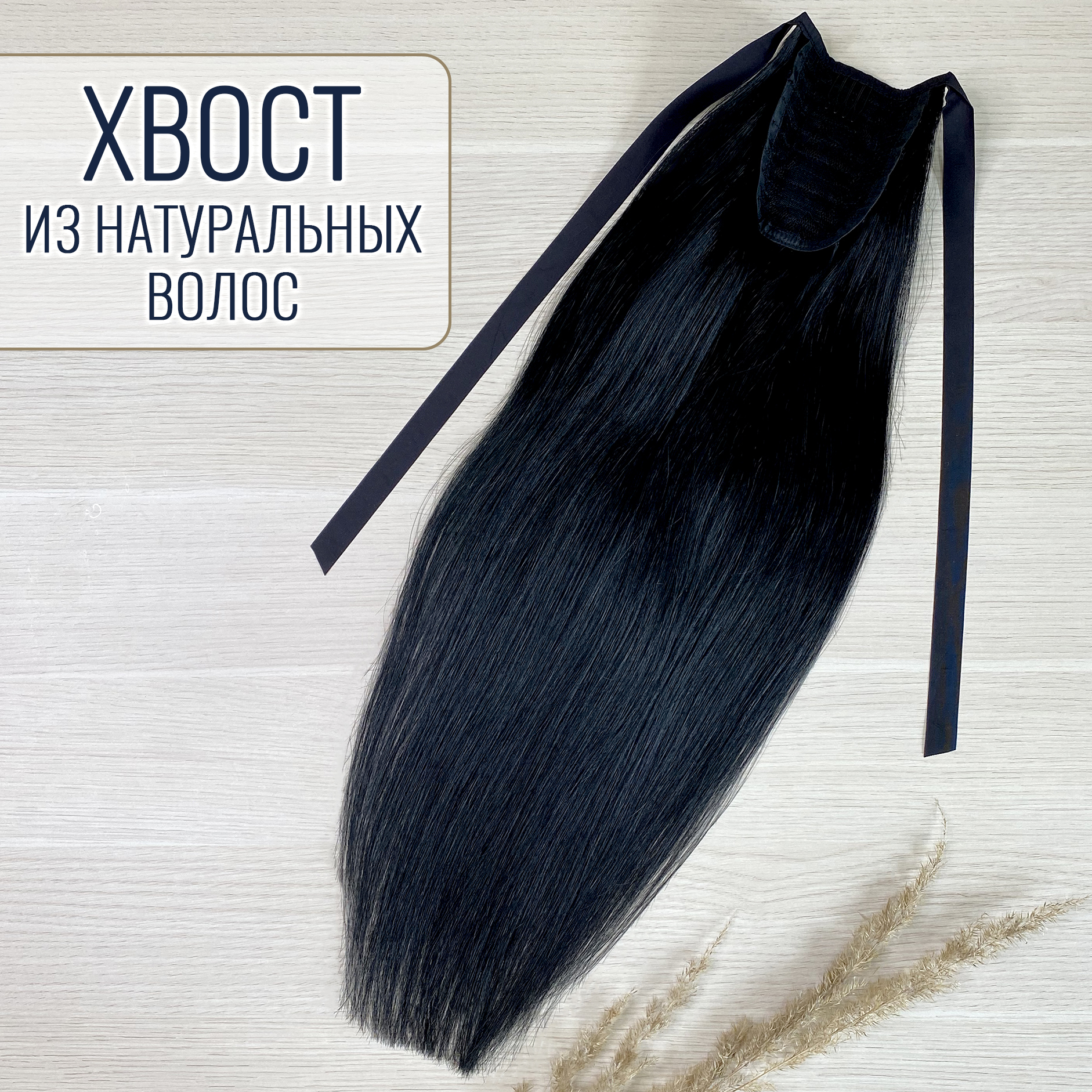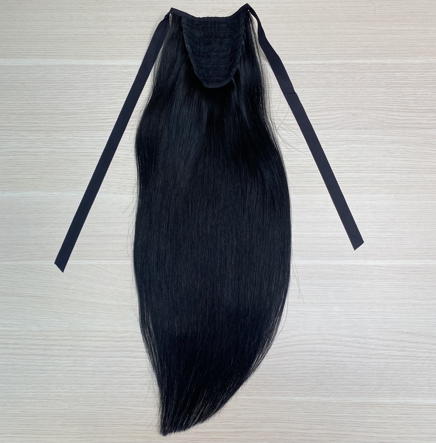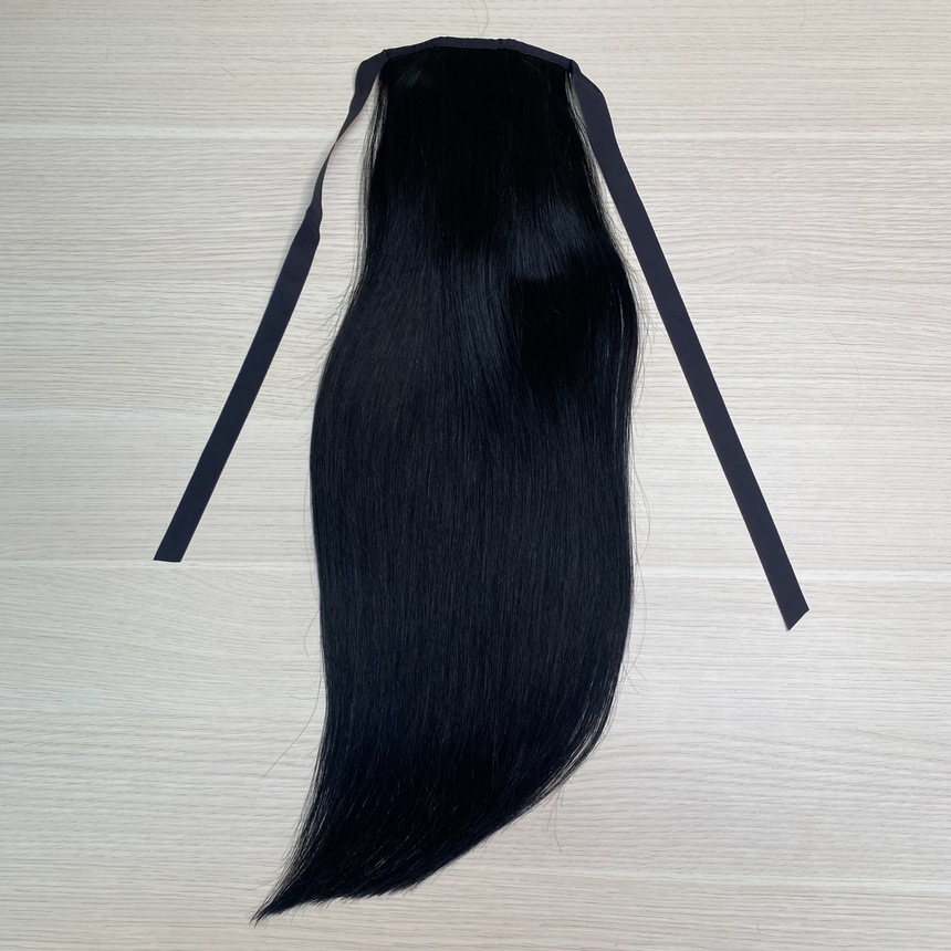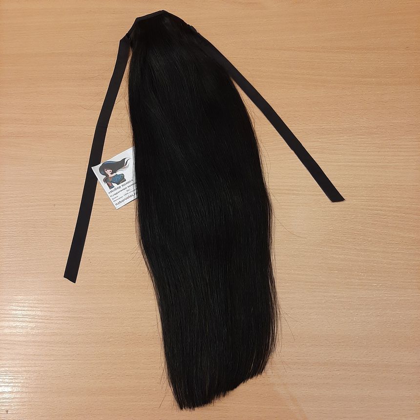 Накладной хвост из натуральных волос 50см 80г - черный #1